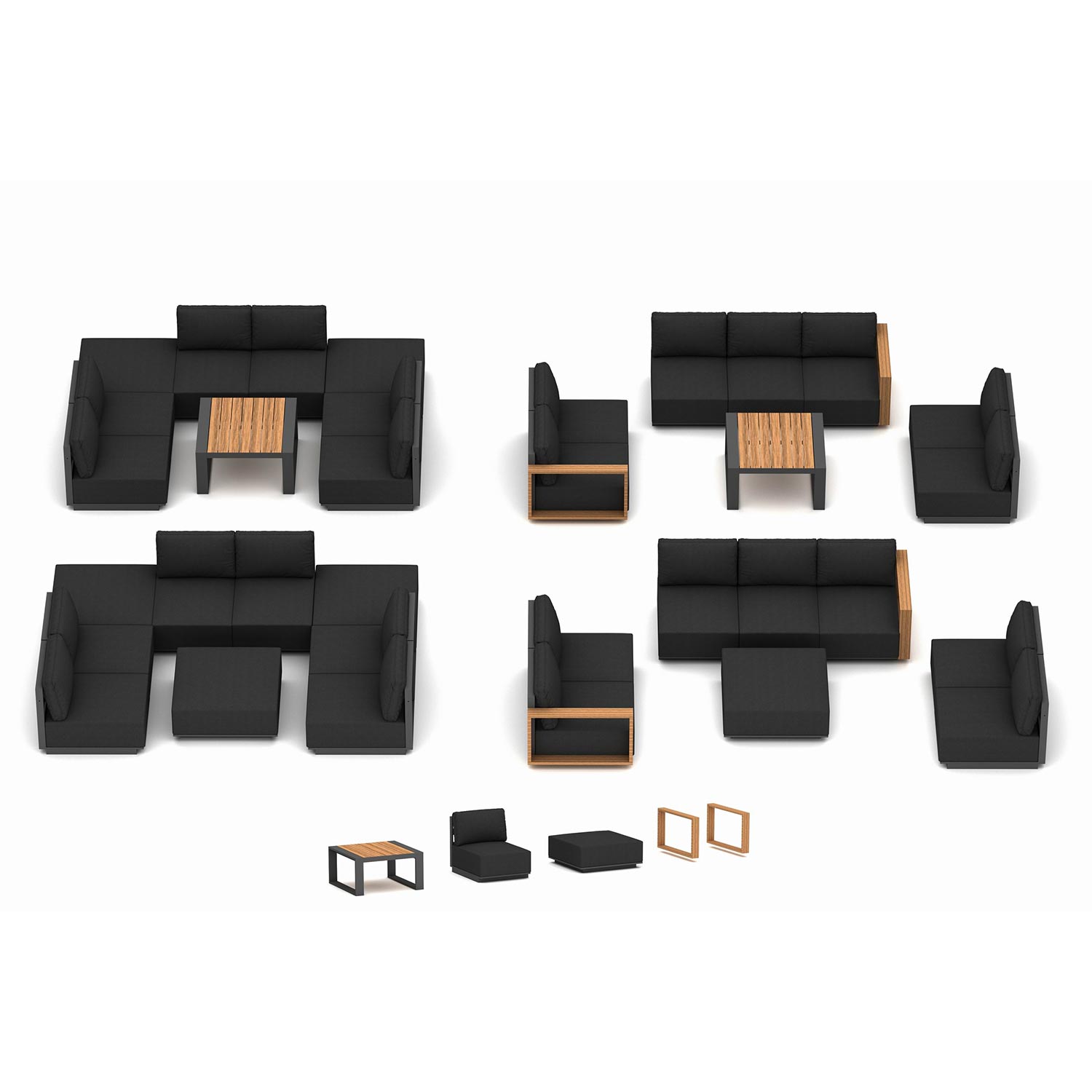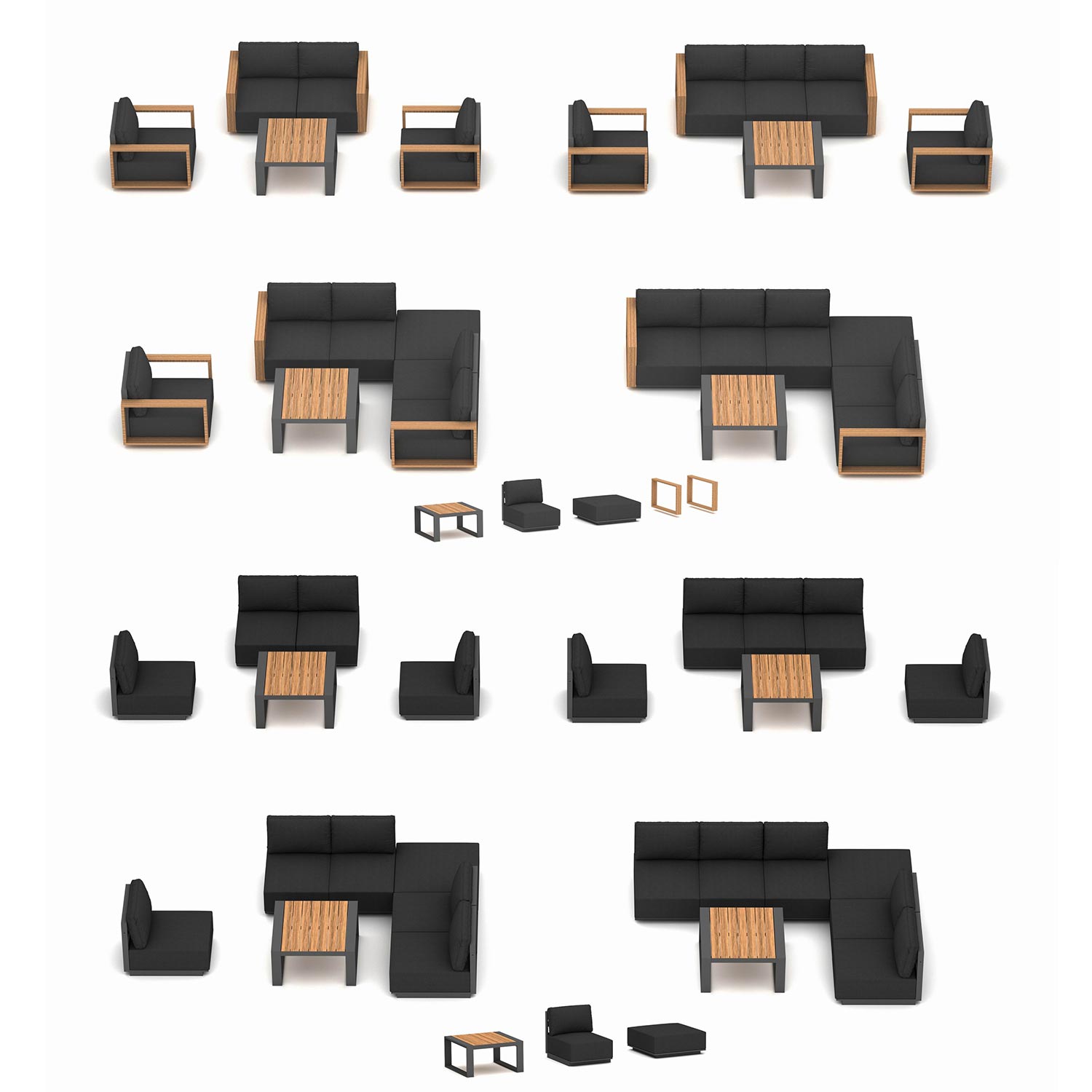 Sarja kuulub 1-kohaline ilma käetugedeta moodul, tumba, käetoed ja diivanilaud. Kõik osad on saadaval eraldiseivate toodetena.