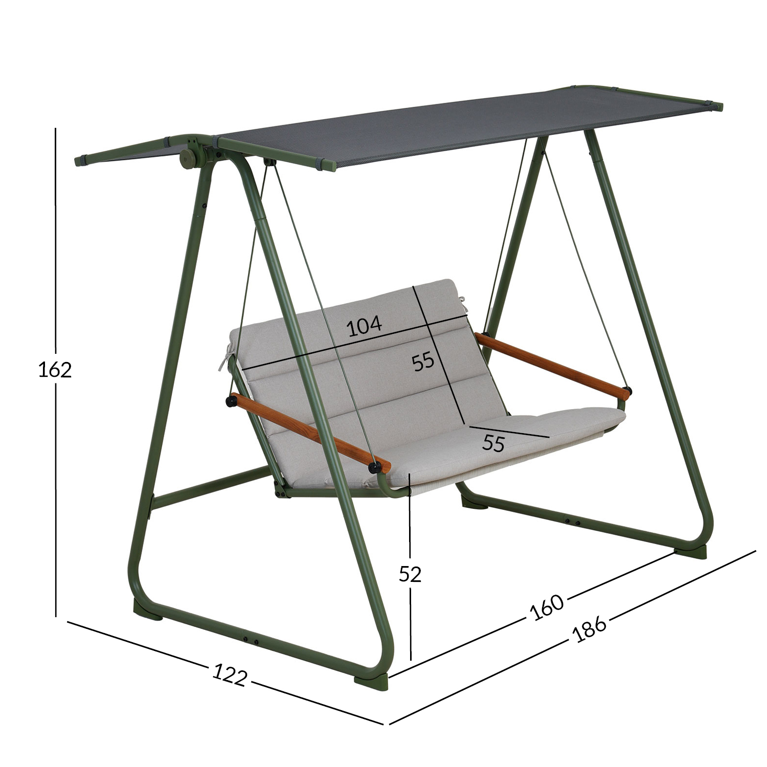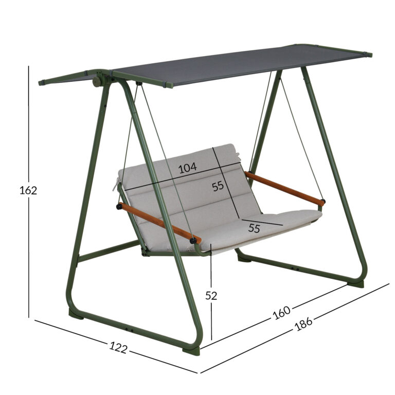 Kiige üldmõõdud on 186x122xH162cm.