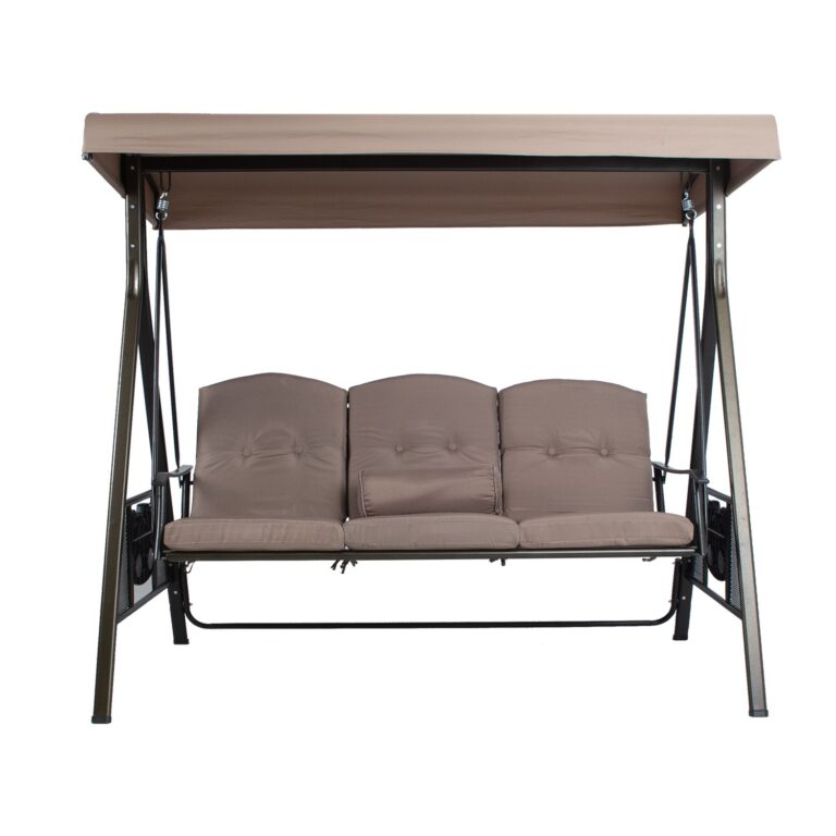 Varikatuse ja pehmete patjadega aiakiik on mõnus võimalus õues lõõgastumiseks.