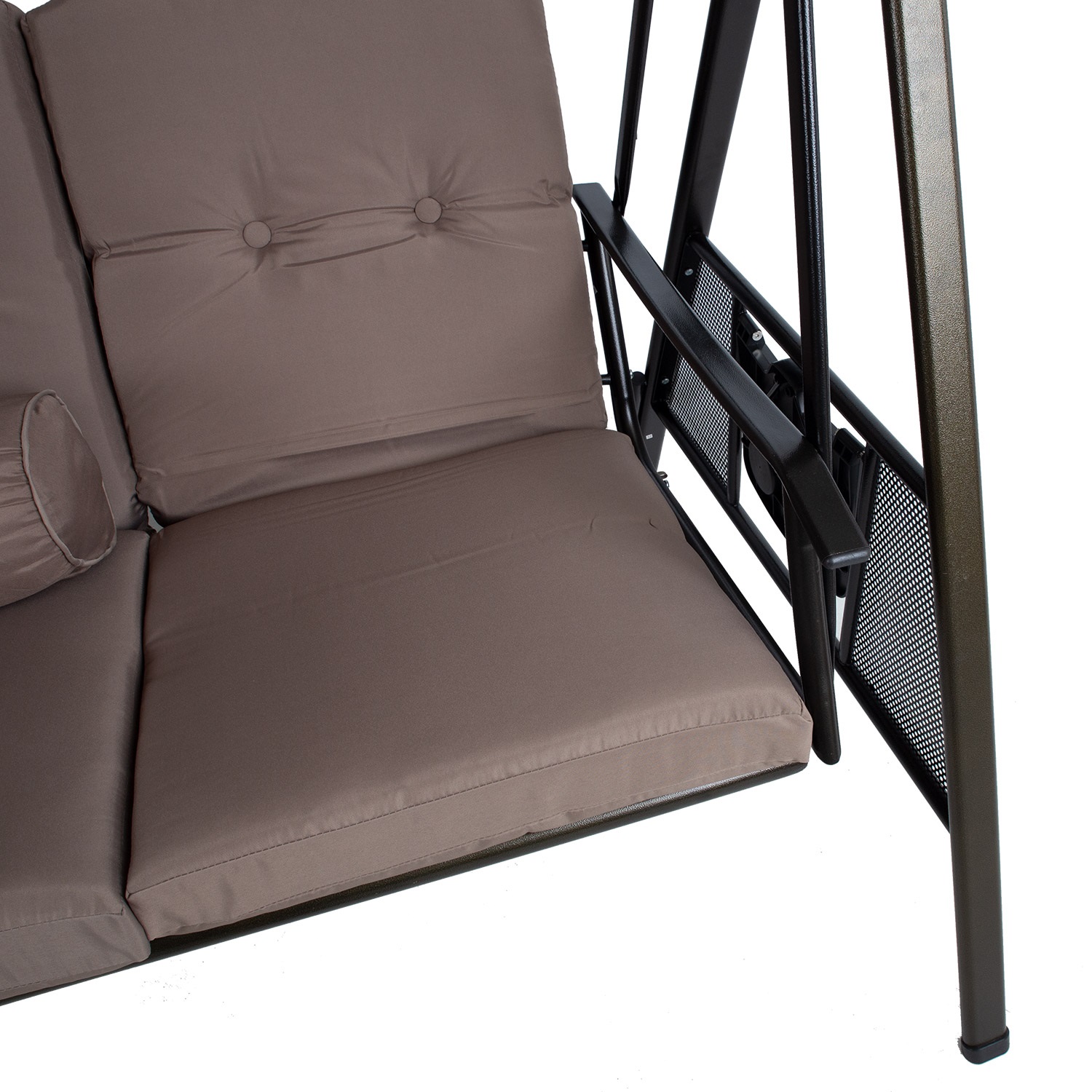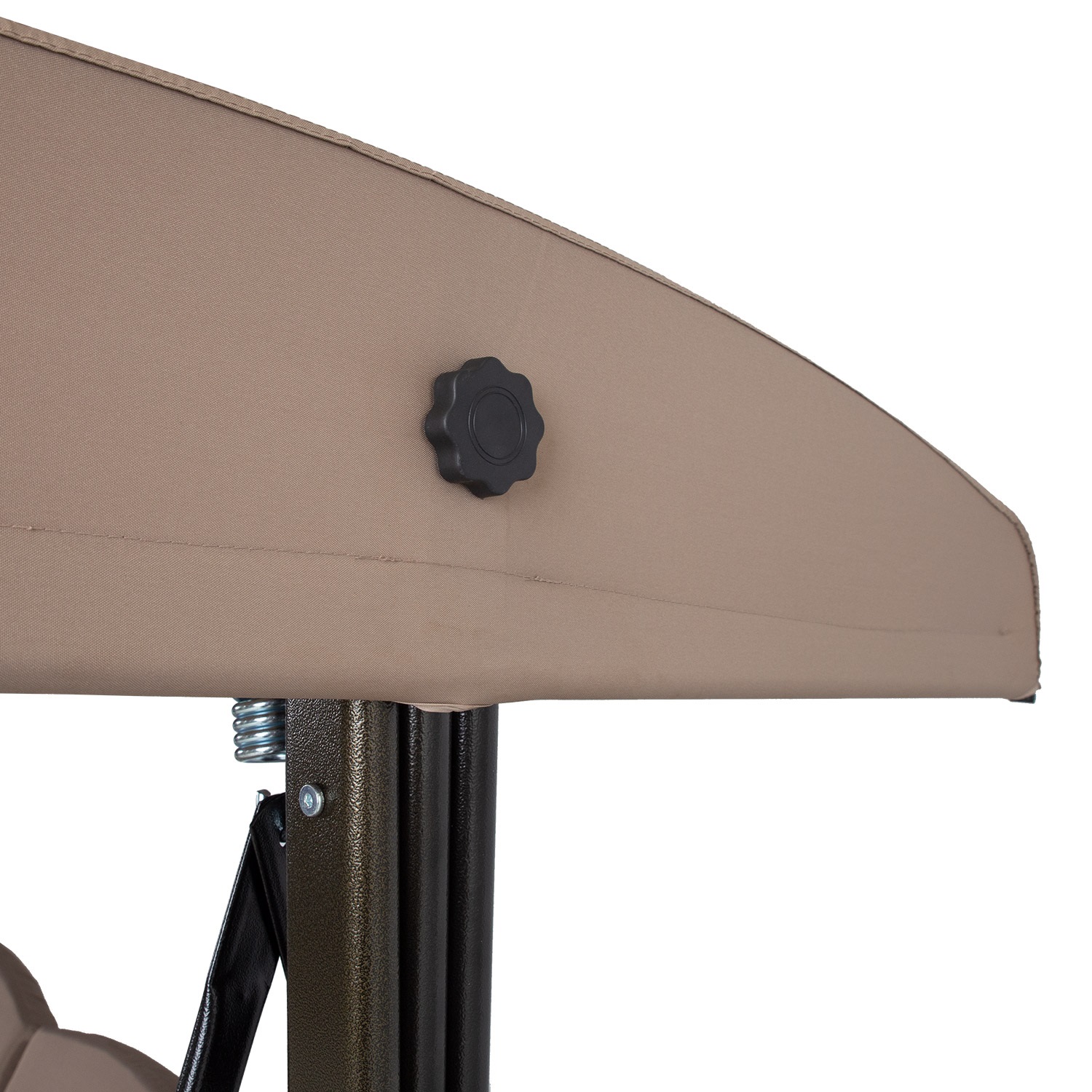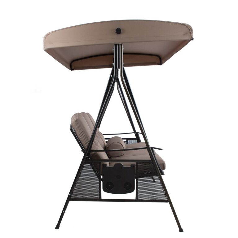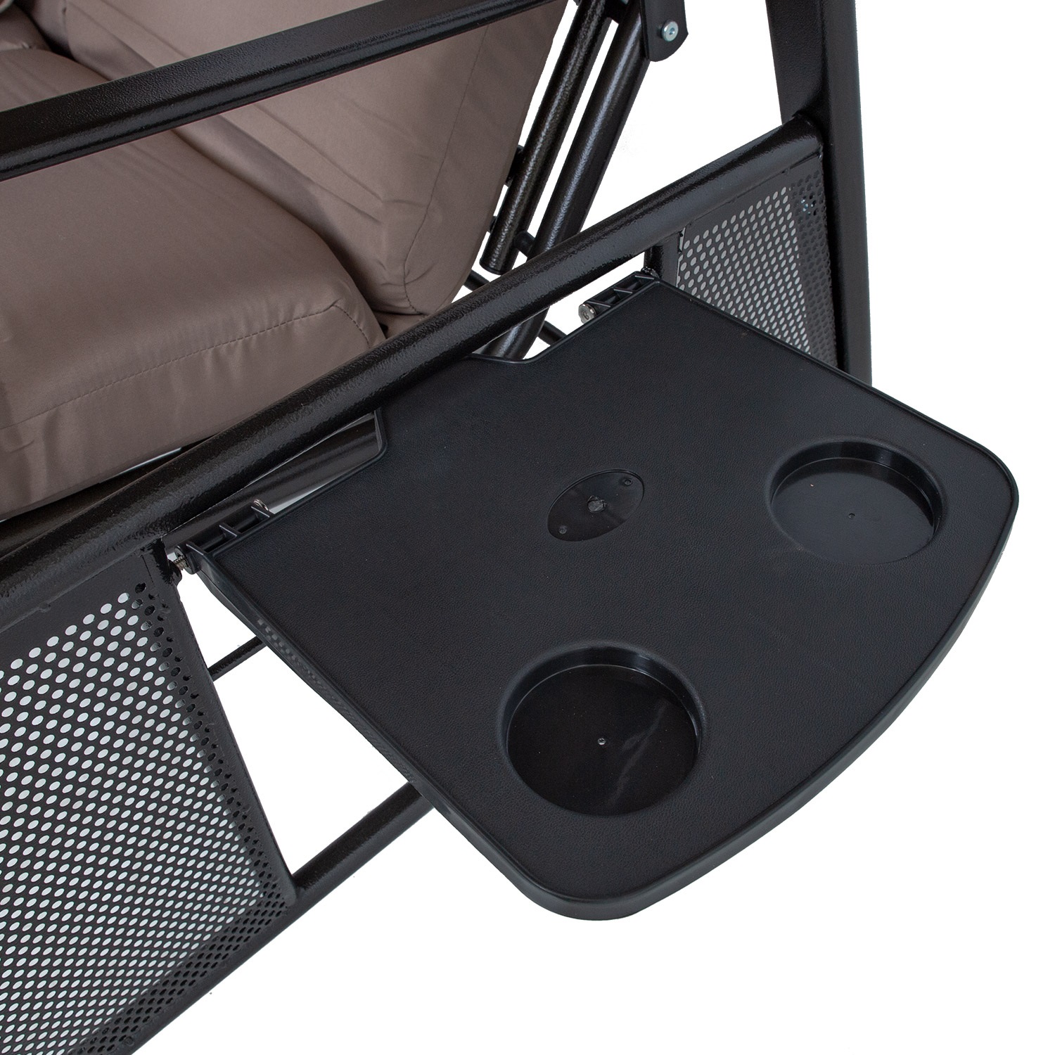 Kiige mõlemal küljel on väike alla klapitav abilaud. Kiige raam ja iste on valmistatud terasest ja viimistletud pruuni pulbervärviga.