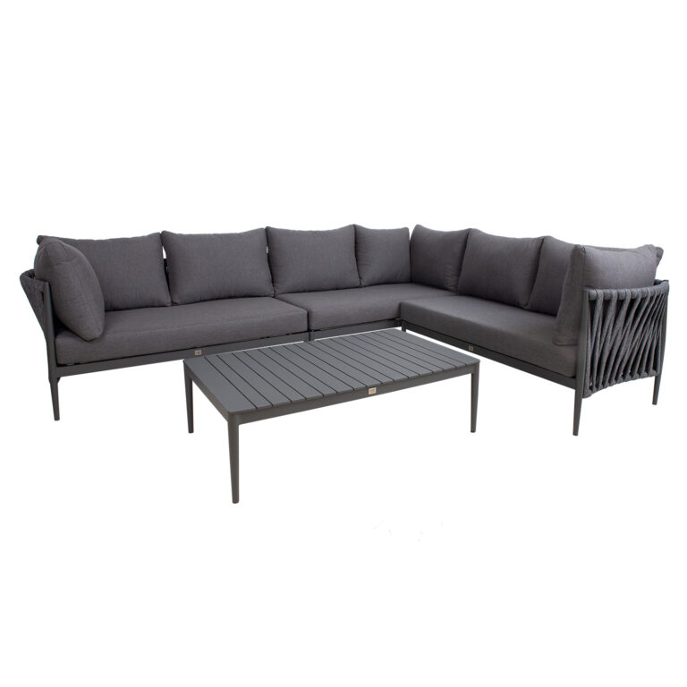 Aiamööblikomplekt BREMEN laud ja nurgadiivan, hall.