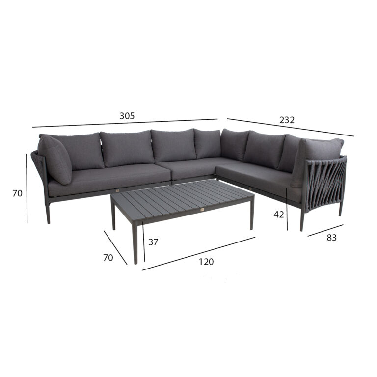 Aiamööblikomplekt BREMEN laud ja nurgadiivan, hall