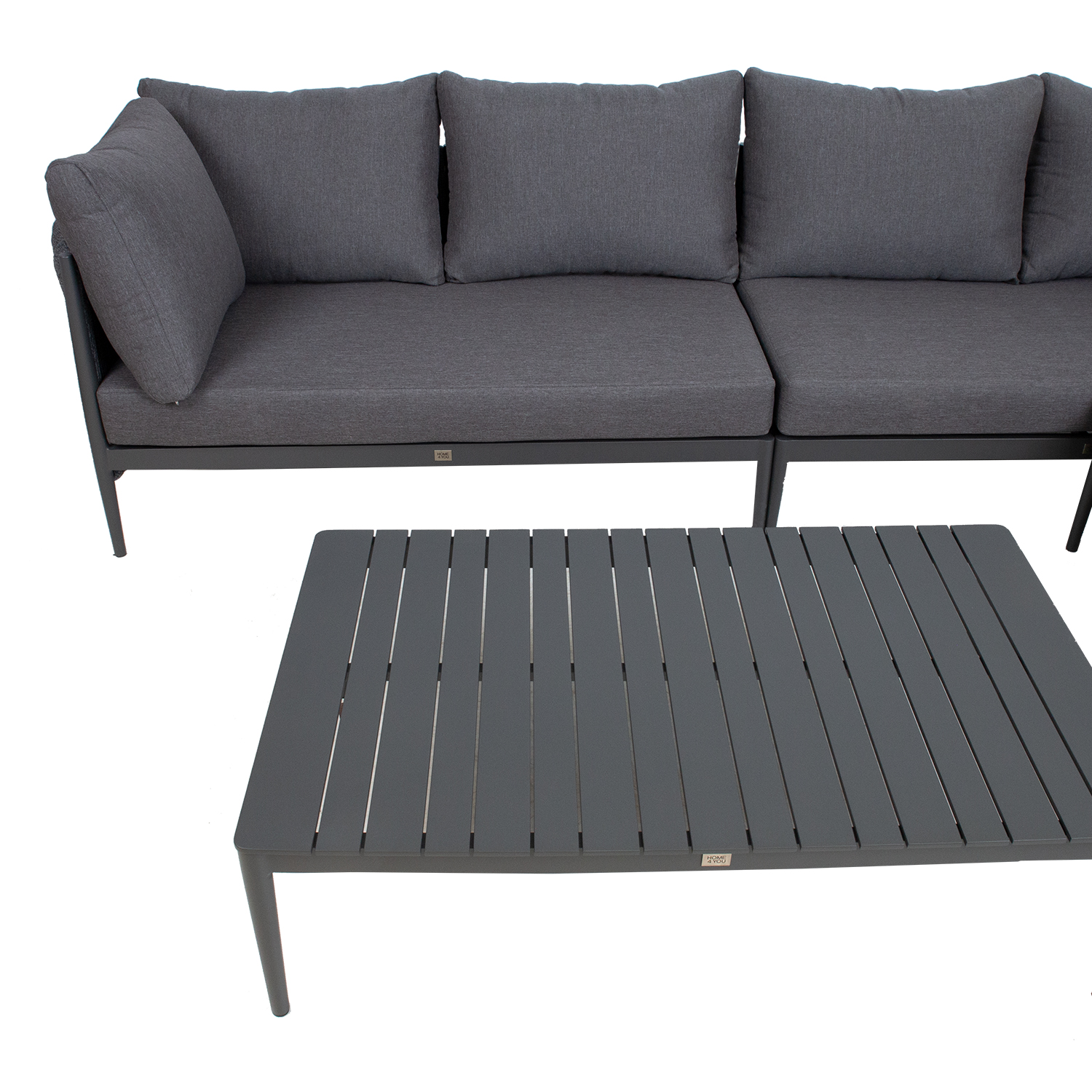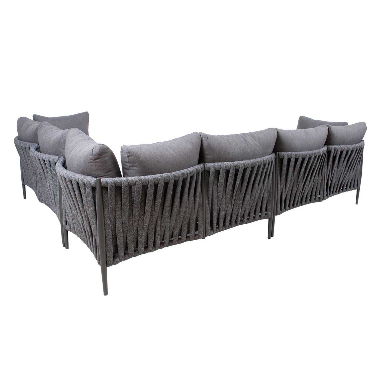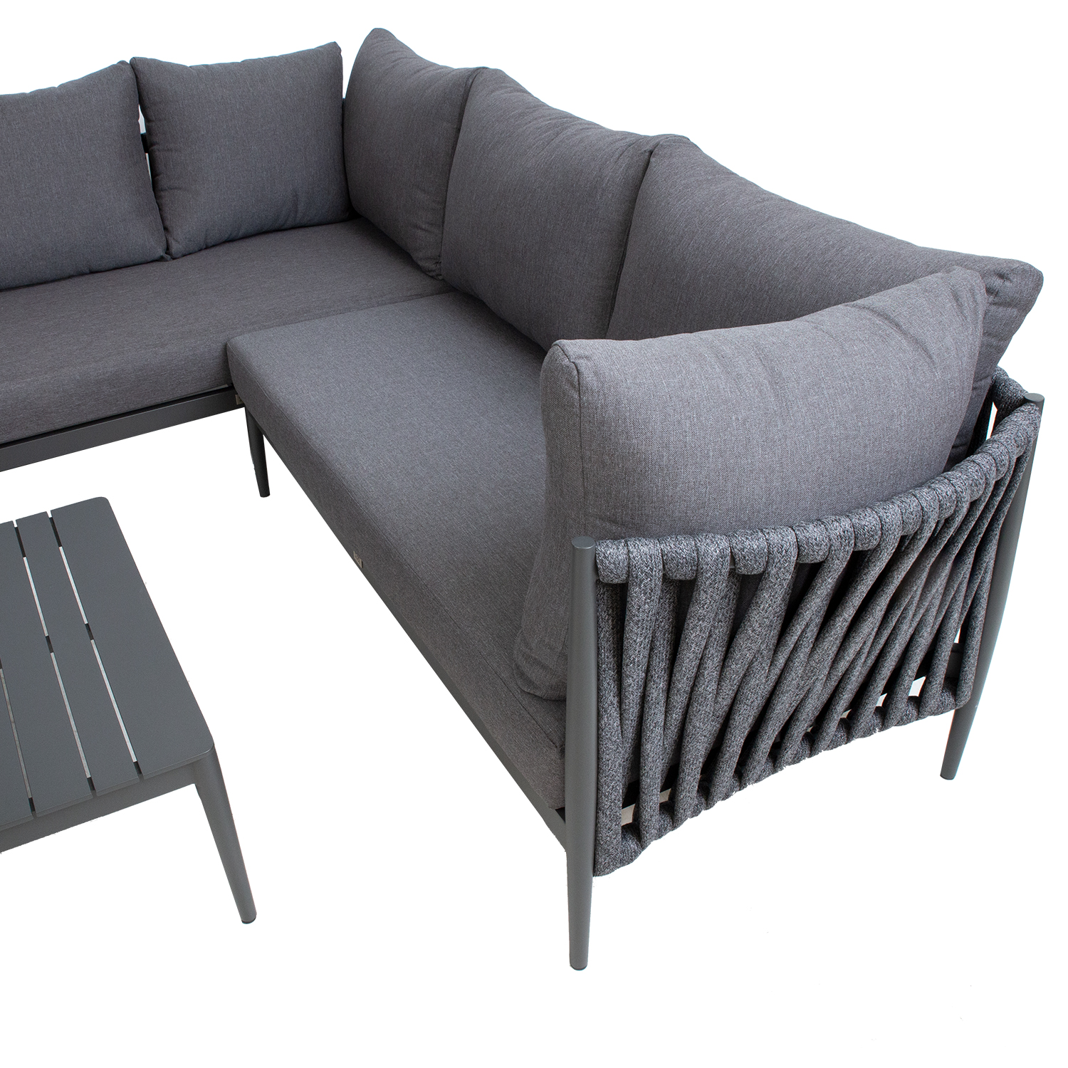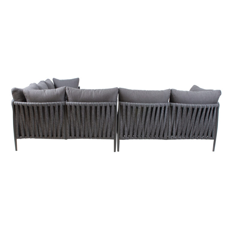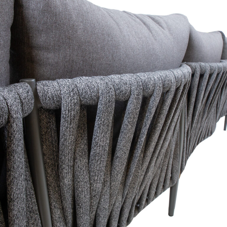 Diivani halli pulbervärviga viimistletud alumiiniumraami katab efektne nöörpunutis.