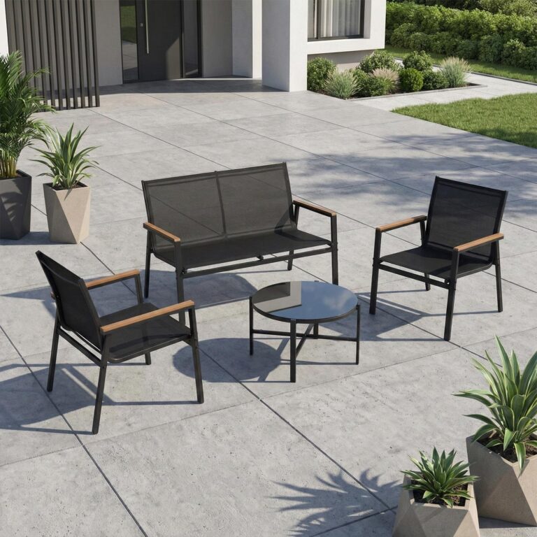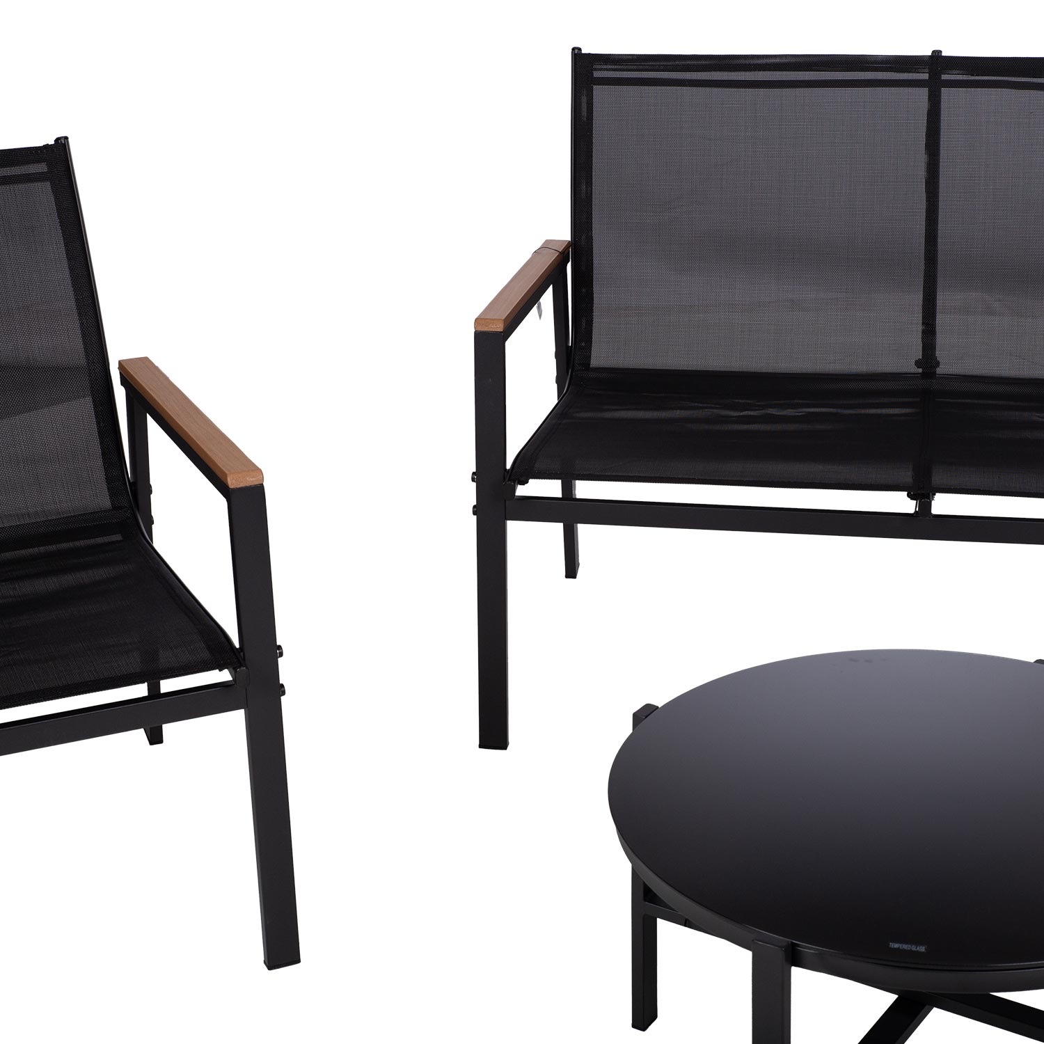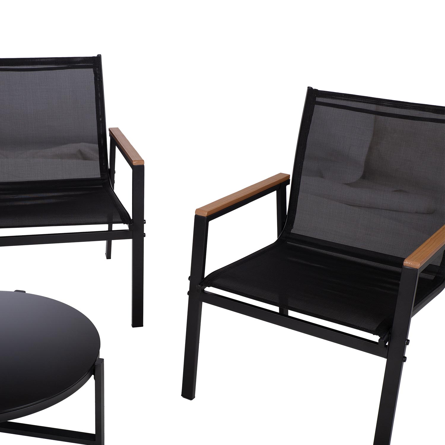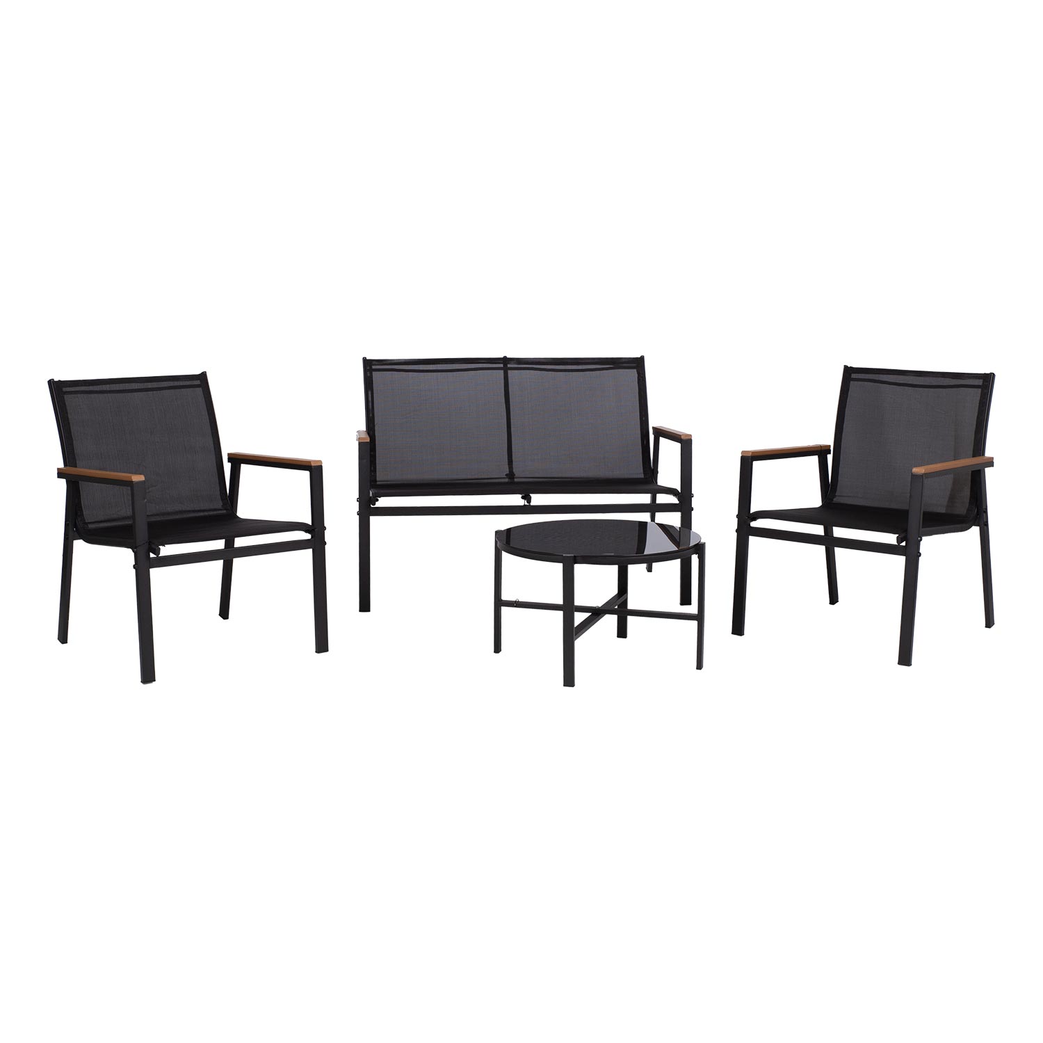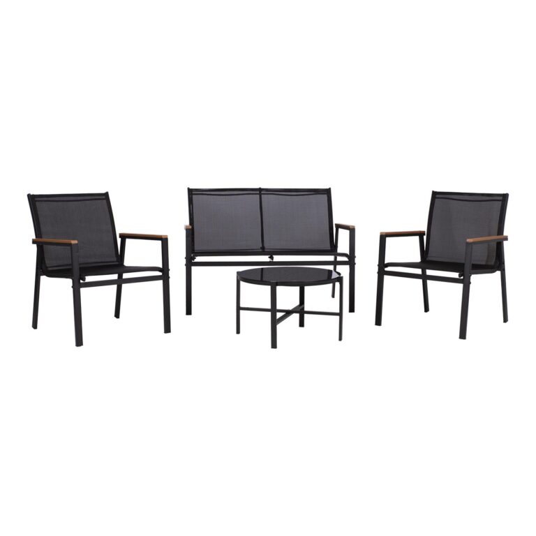 Aiamööblikomplekt CANAAN laud, pink ja 2 tooli, must