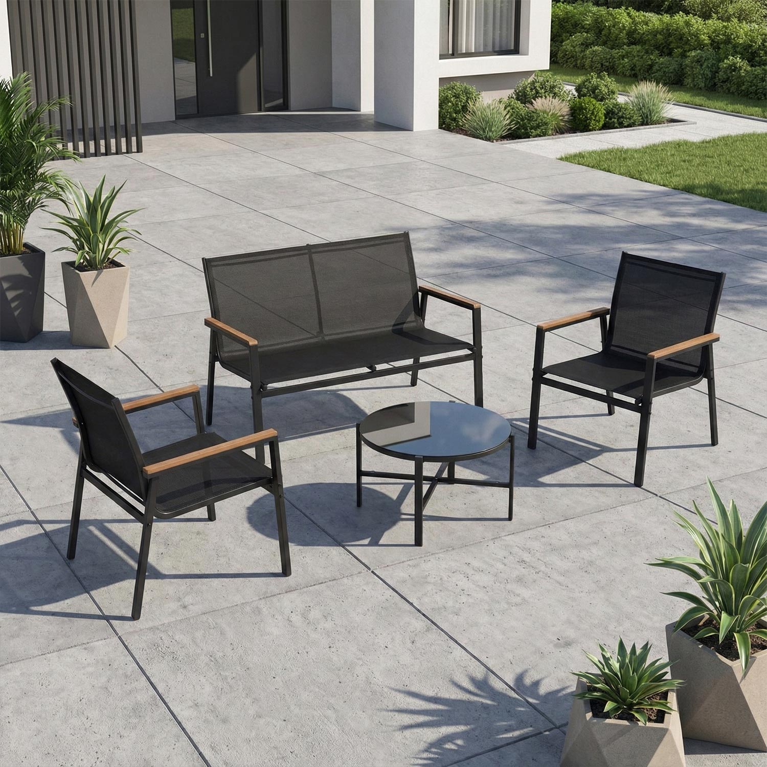 Aiamööblikomplekt CANAAN laud, pink ja 2 tooli, must.