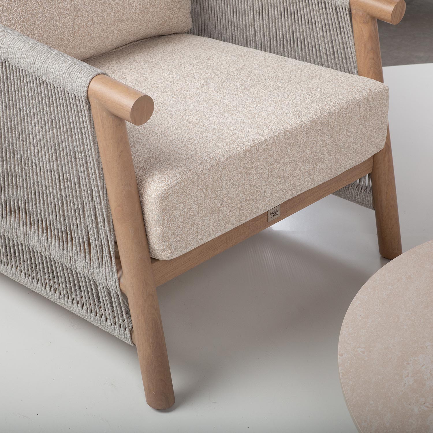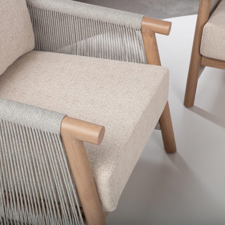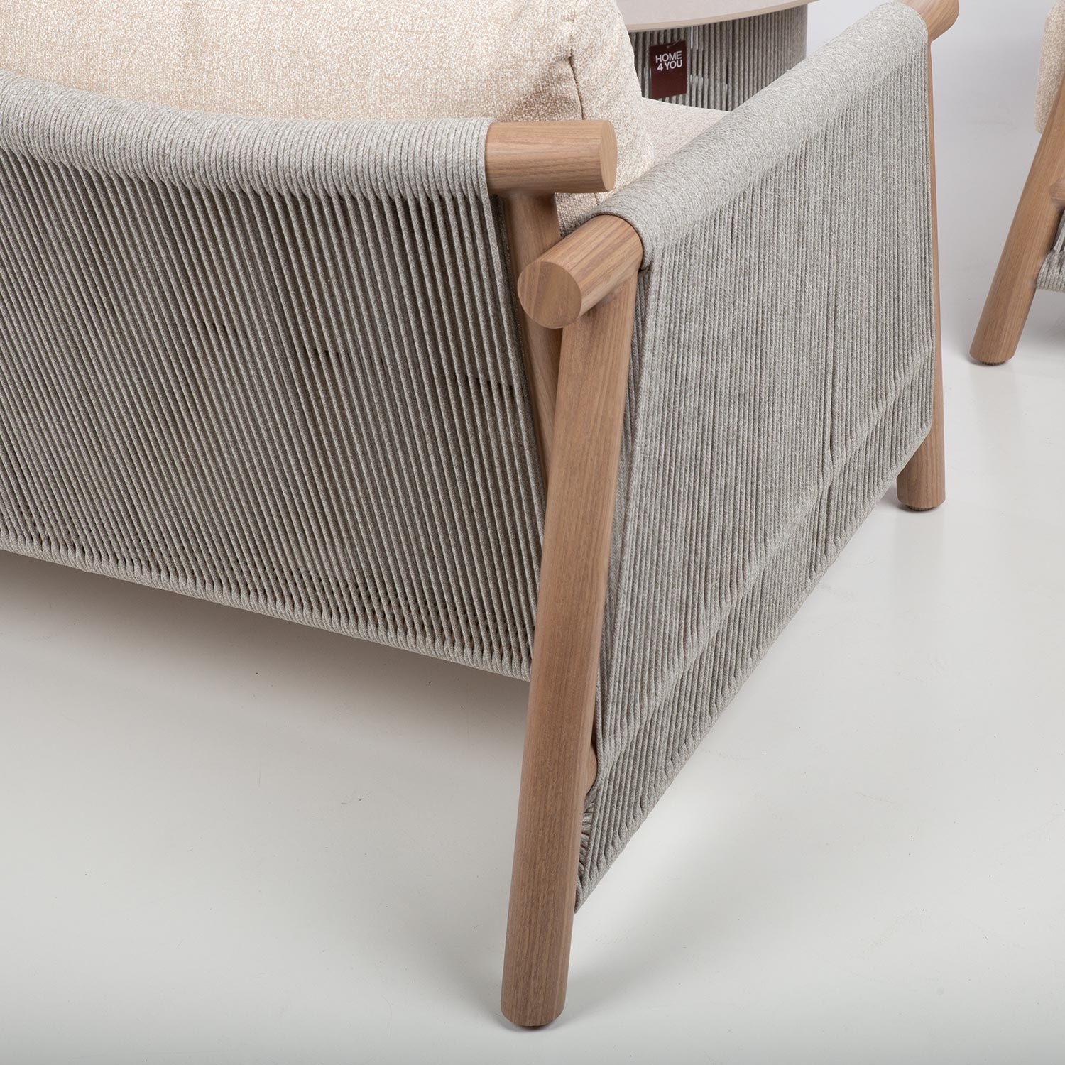 Diivani ja tugitoolide küljed ning laua alusraam on kaetud kauni nöörpunutisega.