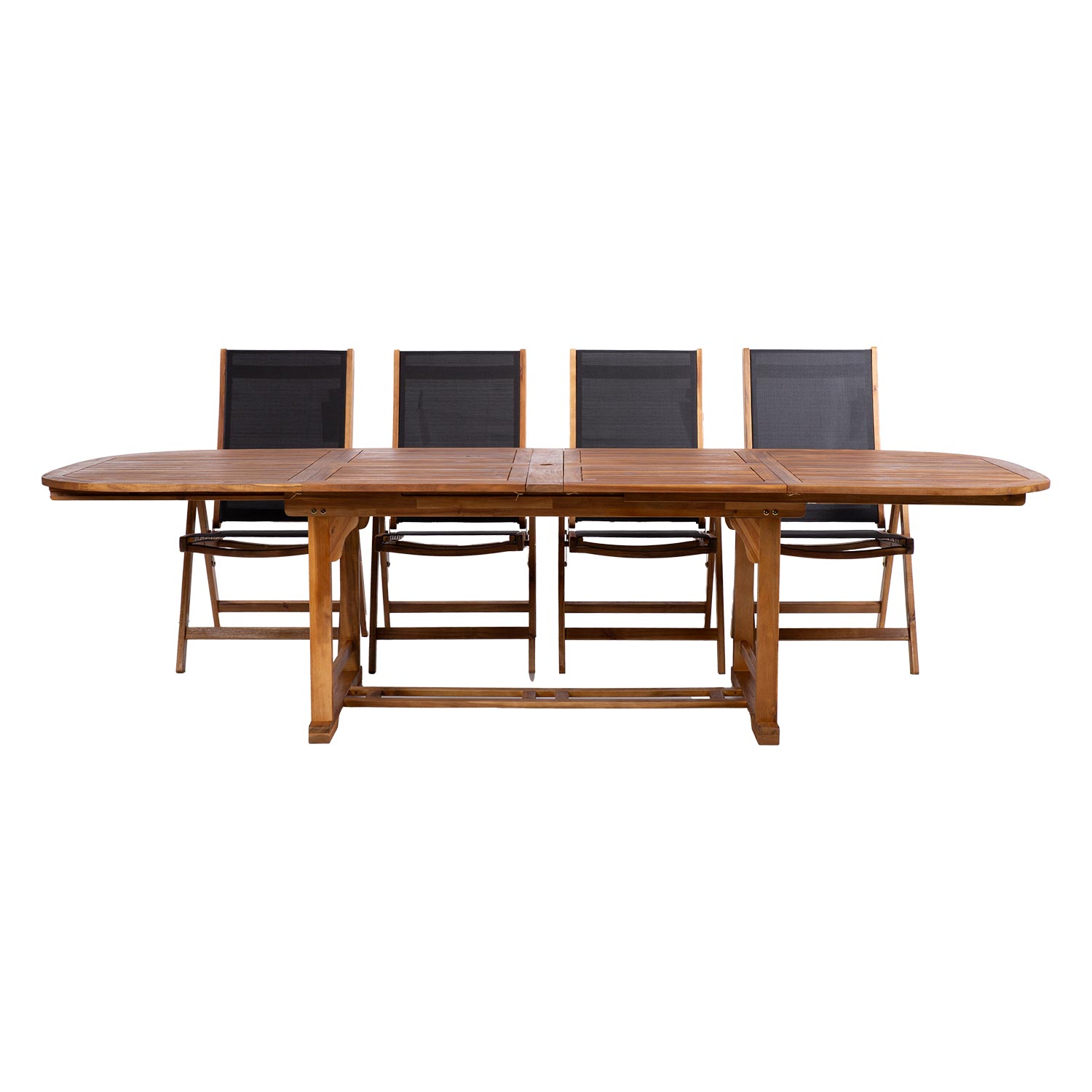 Laud ja toolide raamid on valmistatud akaatsiapuidust ja viimistletud puidukaitseõliga.