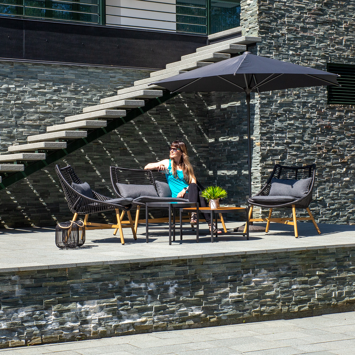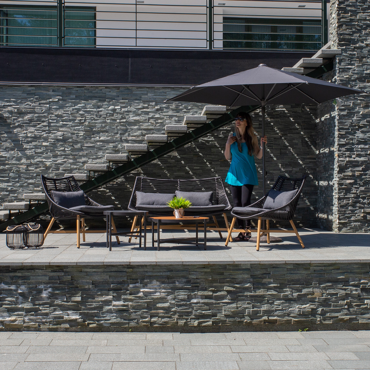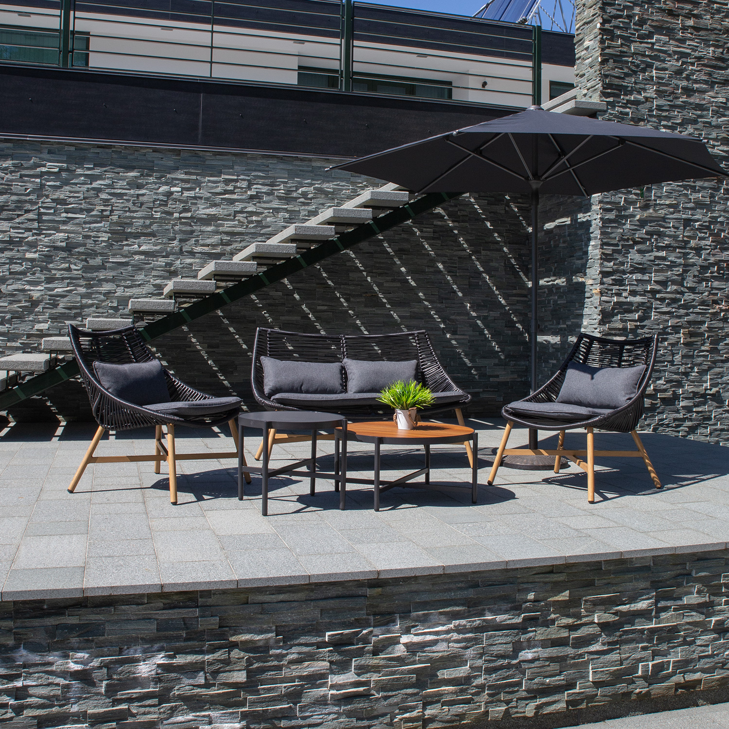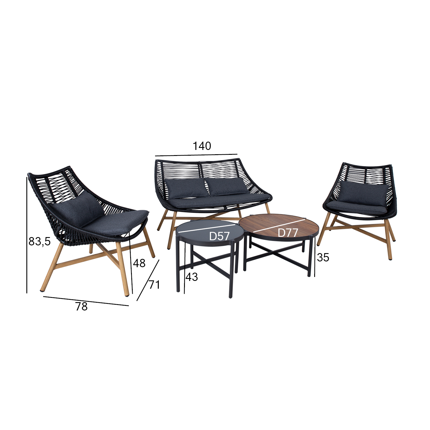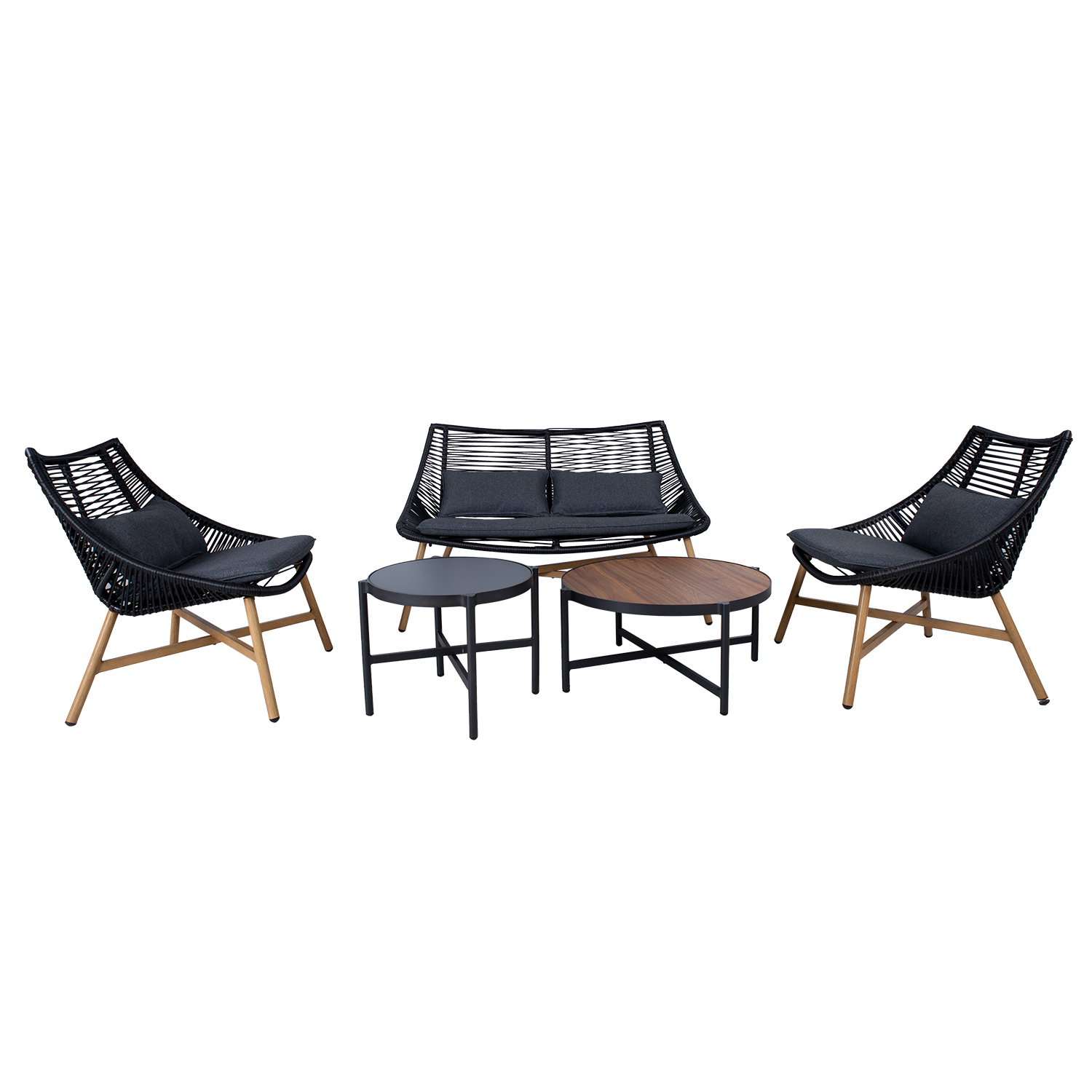 Aiamööblikomplekt HELSINKI diivan, 2 tooli ja 2 lauda, must