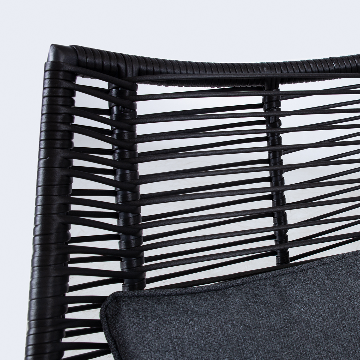 Diivani ja toolide istmed on kaetud musta plastikpunutisega.