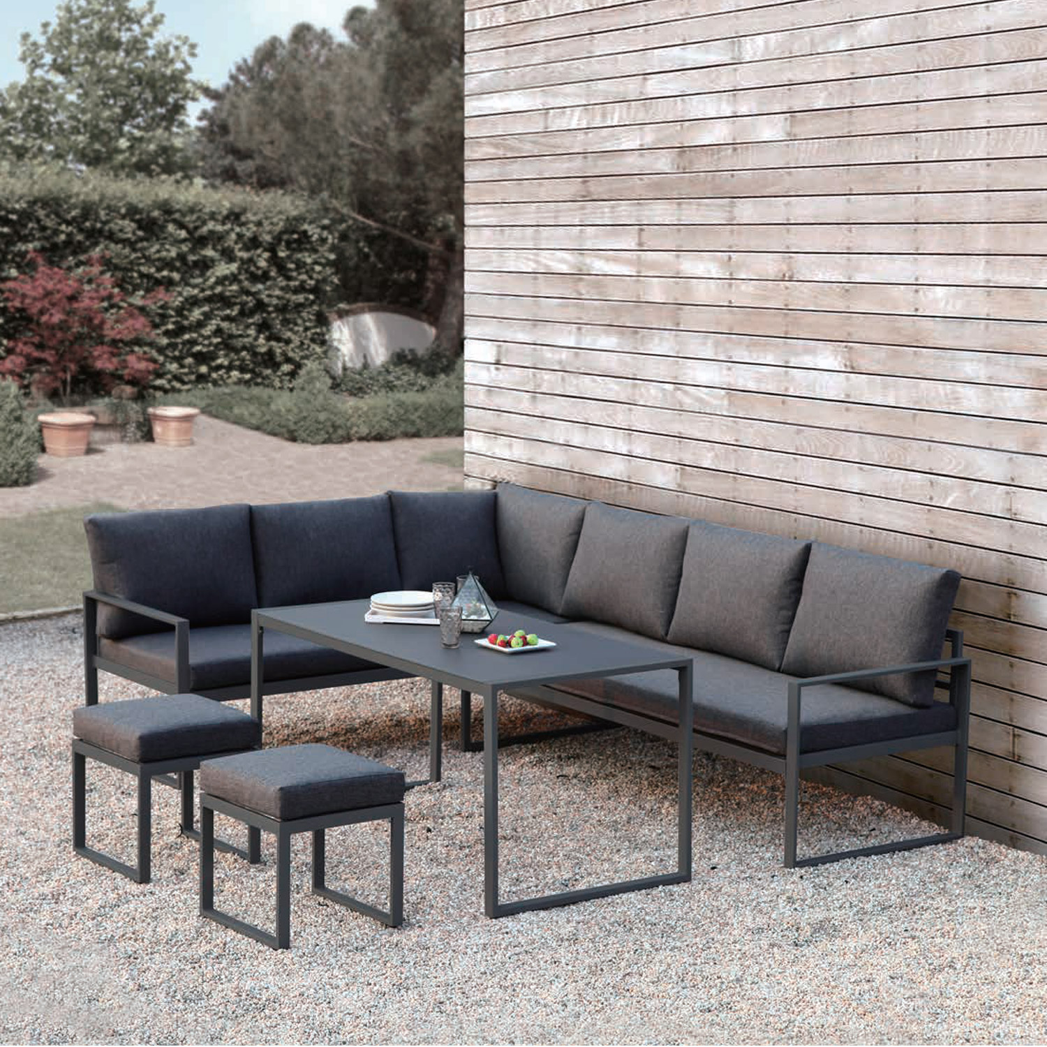 Aiamööblikomplekt LEIPZIG laud, nurgadiivan ja 2 tumbat