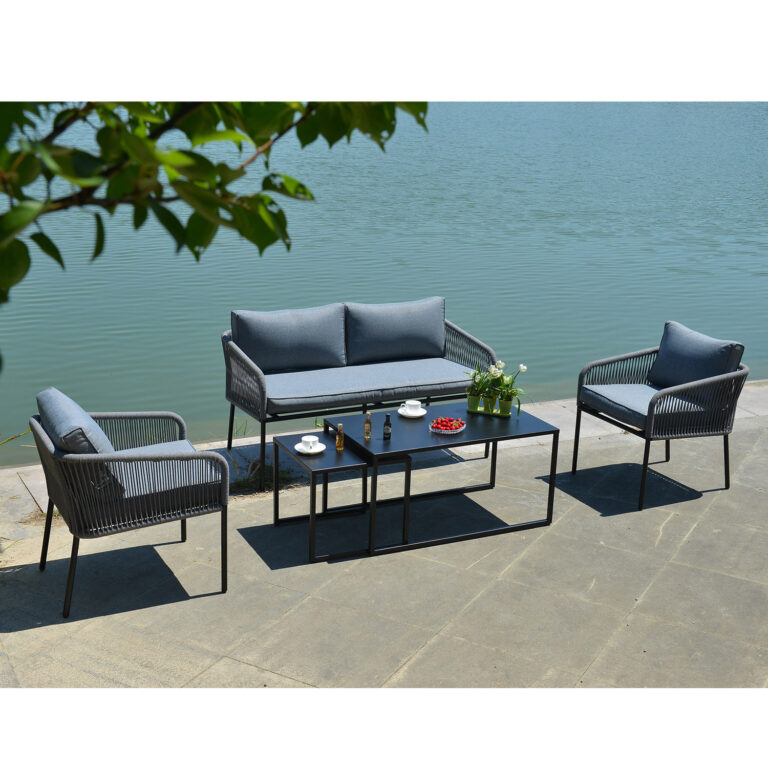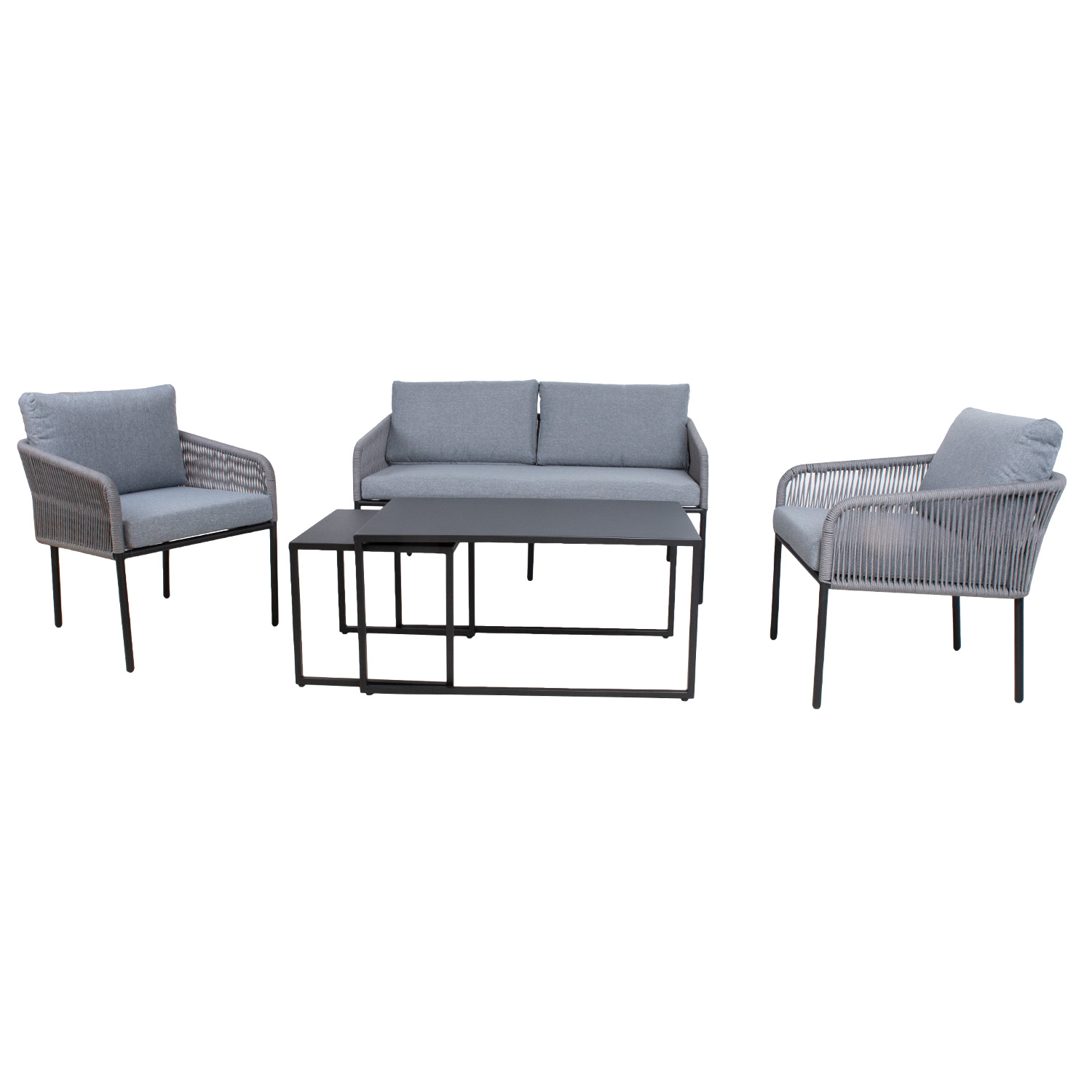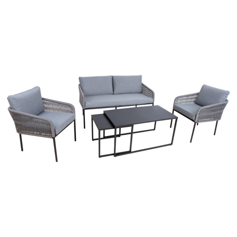 Aiamööblikomplekt LEVINE 2 lauda, diivan ja 2 tugitooli, hall.