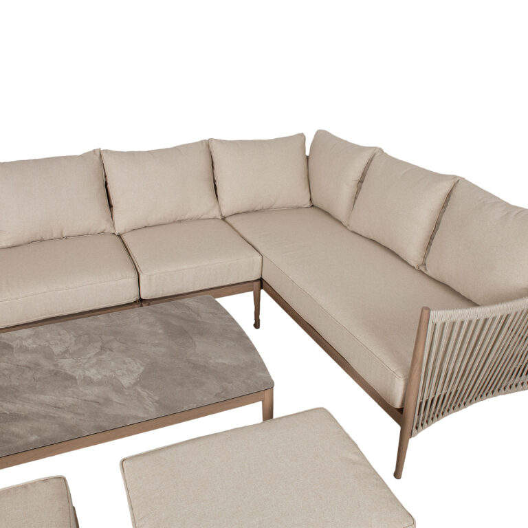 Aiamööblikomplekt MEDINA nurgadiivan, tugitool, 2 tumbat ja diivanlaud, beež.