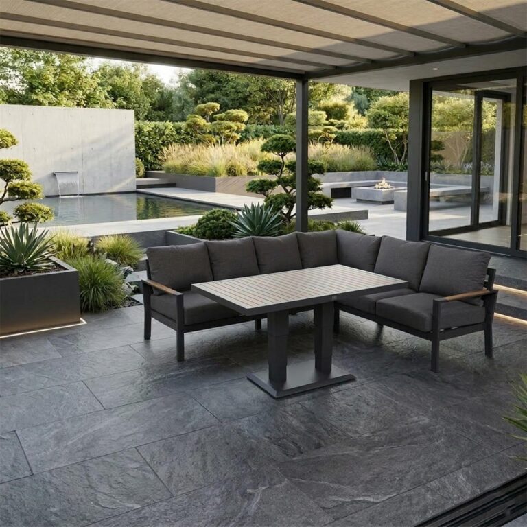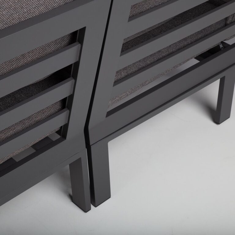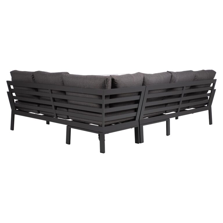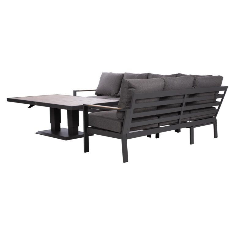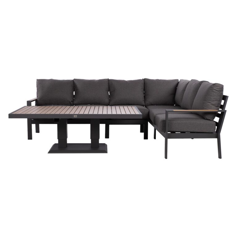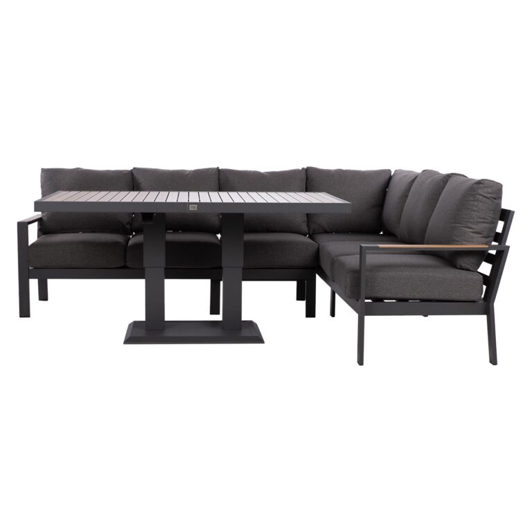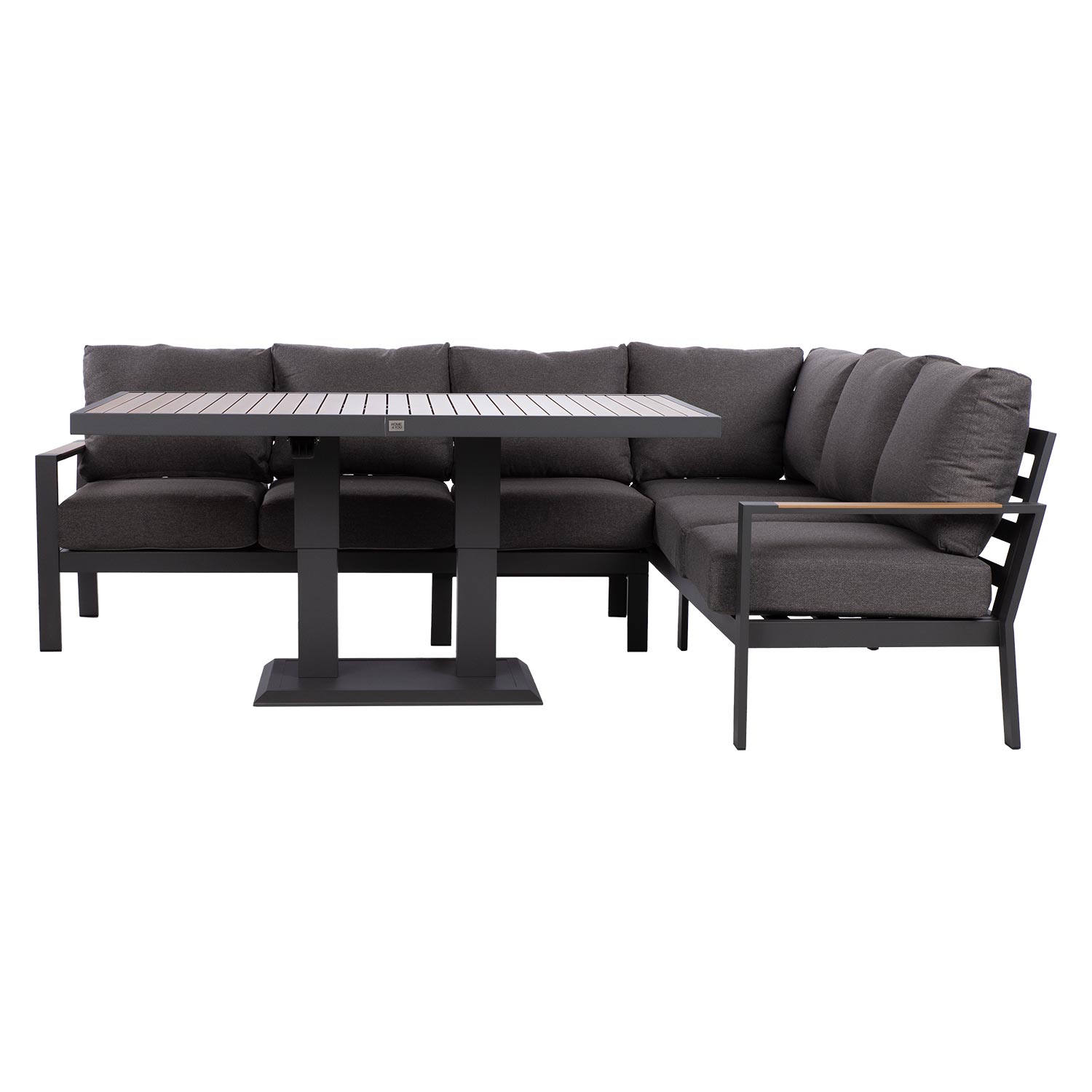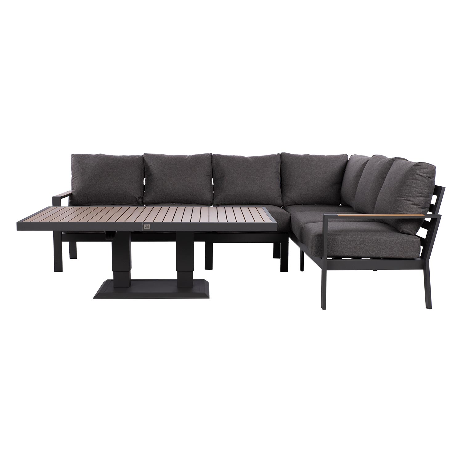 Aiamööblikomplekt RIO nurgadiivan ja muudetava kõrgusega laud, tumehall.