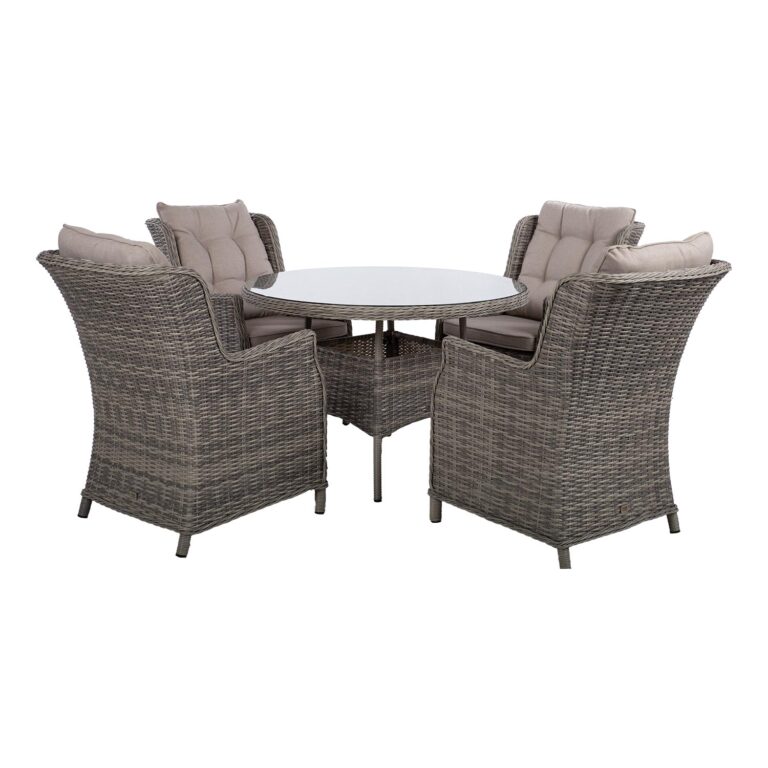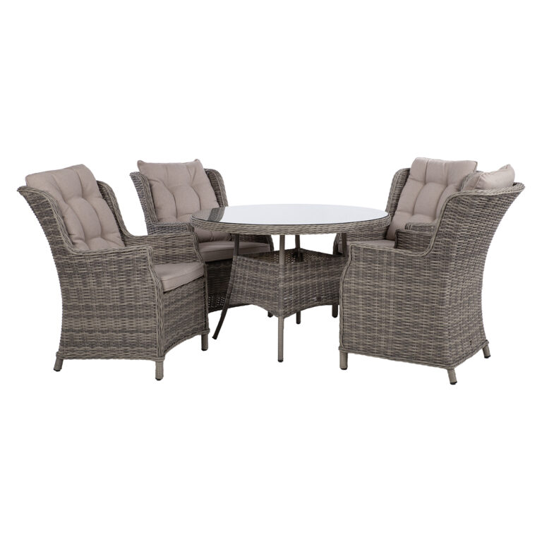 Aiamööblikomplekt TRENTO laud ja 4 tooli, helehall.