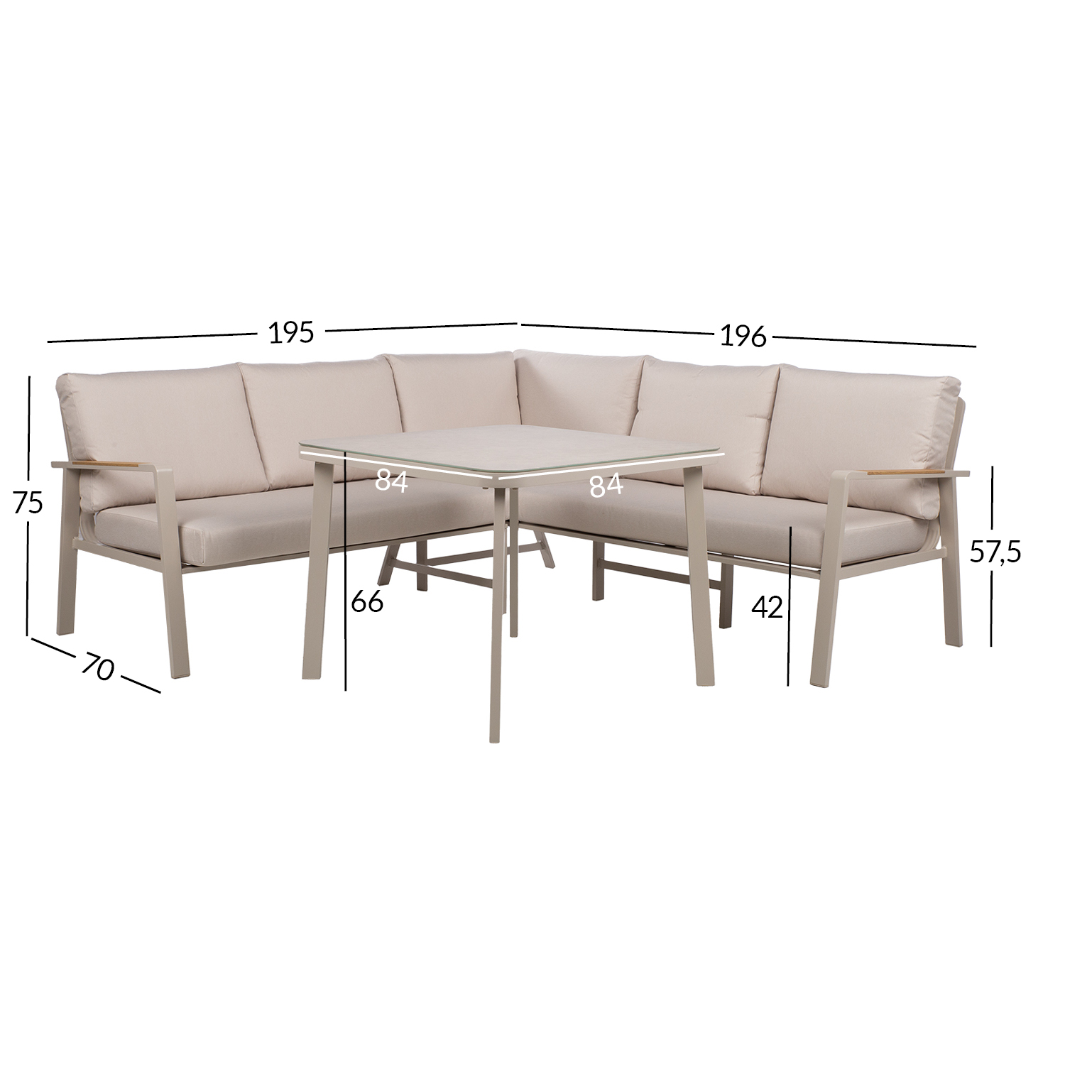 Aiamööblikomplekt UPLAND laud ja nurgadiivan, beež