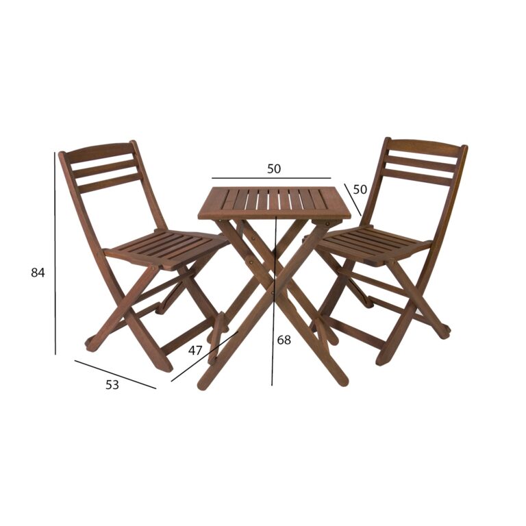 Rõdukomplekt ROUEN laud ja 2 tooli, kokkupandav.
