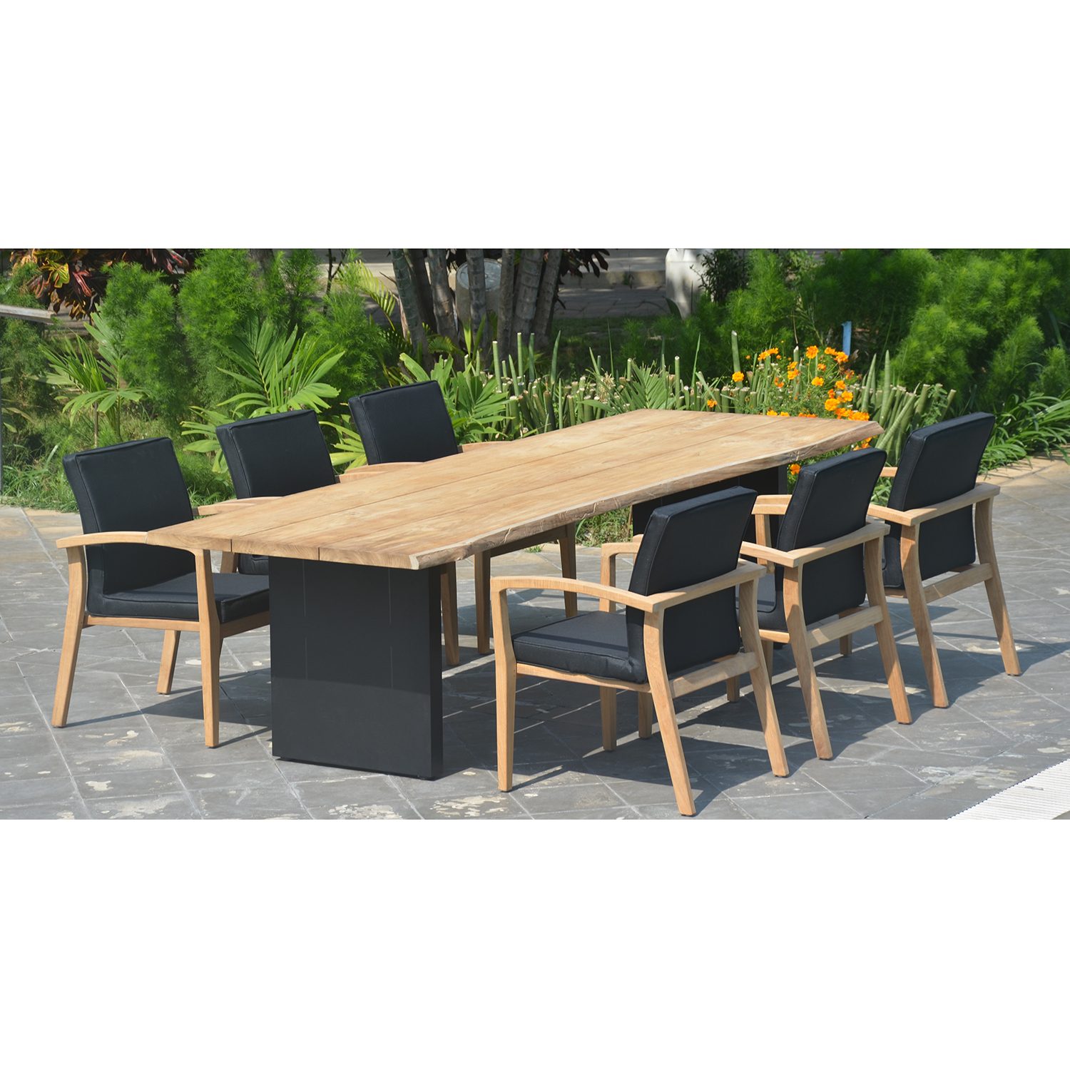 Eksklusiivne tiikpuust laud sobib hästi ka siseruumides kasutamiseks.