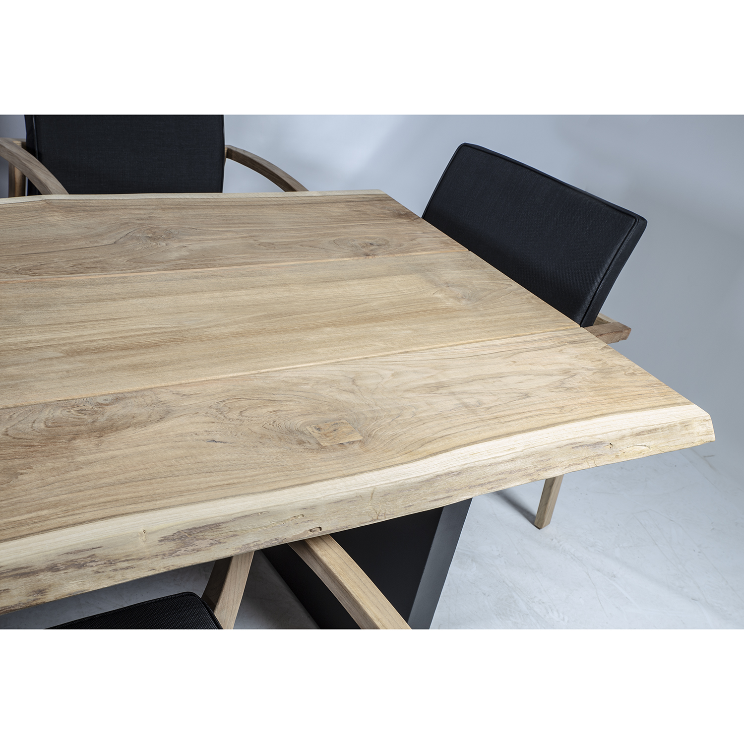 Kolmest paneelist koosnev servamata äärtega lauaplaat on valmistatud A-klassi tiikpuust.