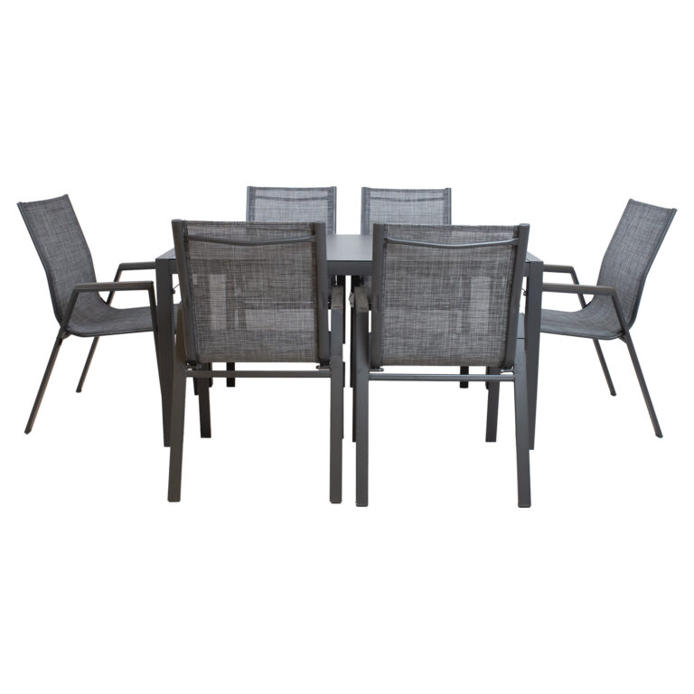 Aiamööblikomplekt DELGADO laud ja 6 tooli, hall