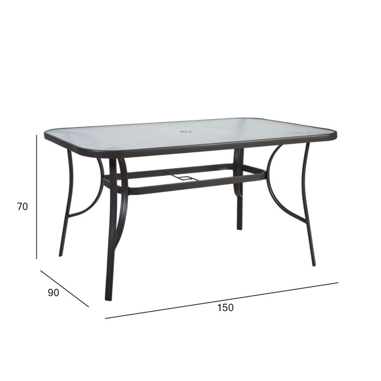 Lauaplaat: 5 mm läbipaistev laineline klaas. Laua keskel on päikesevarjuauk D4 cm.