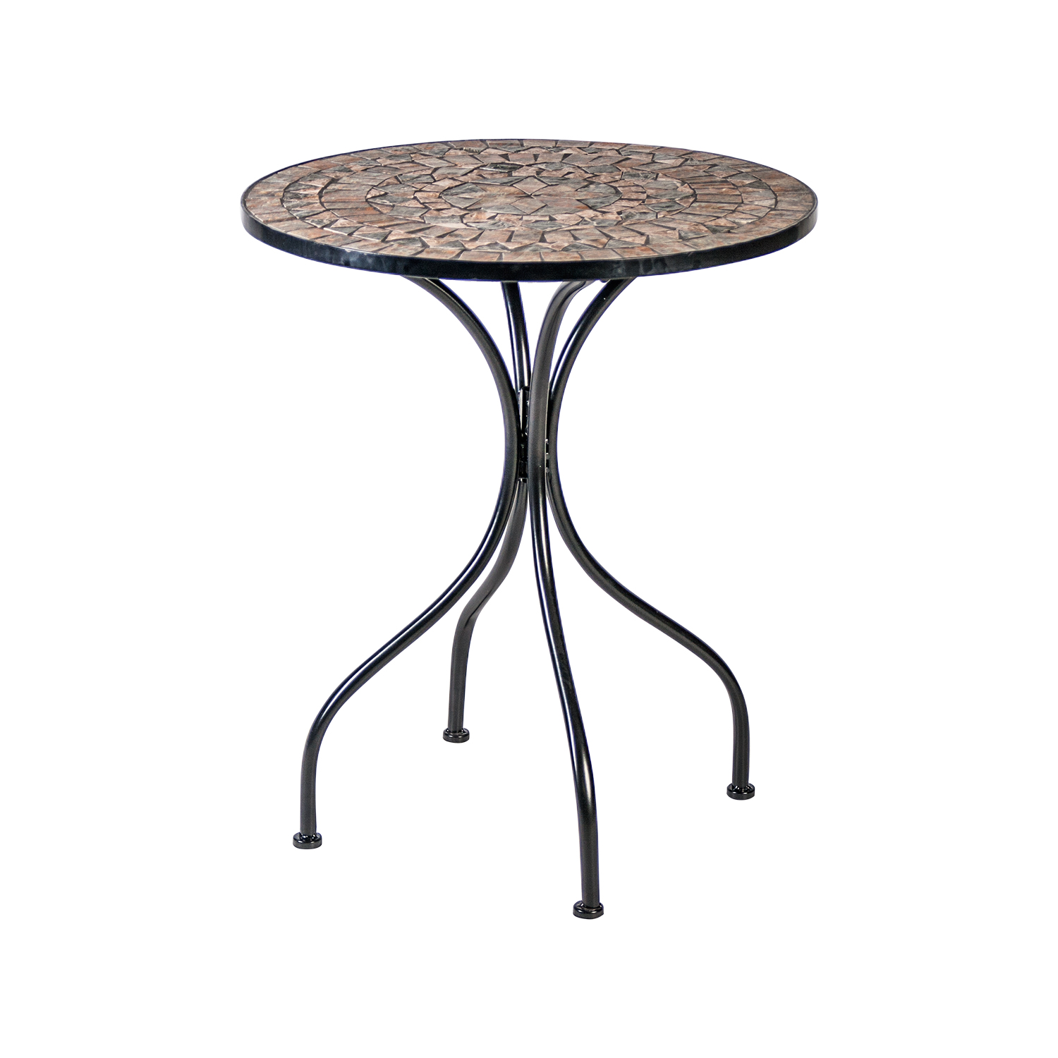 Laua mosaiikplaat on kaunistatud pruunides ja hallides toonides keraamiliste plaatidega.