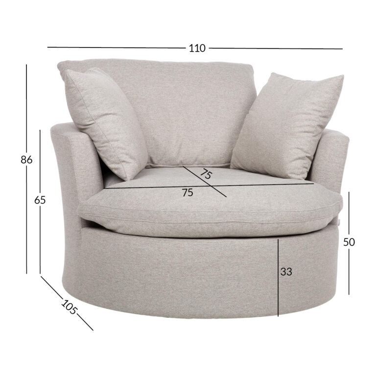 Tugitool FLUFFY pöörlev 110x105xH65/86cm, helehall