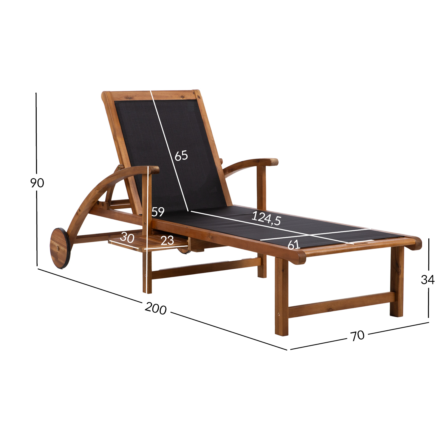 Lamamistooli üldmõõdud: 70 x 200 x H90 cm.