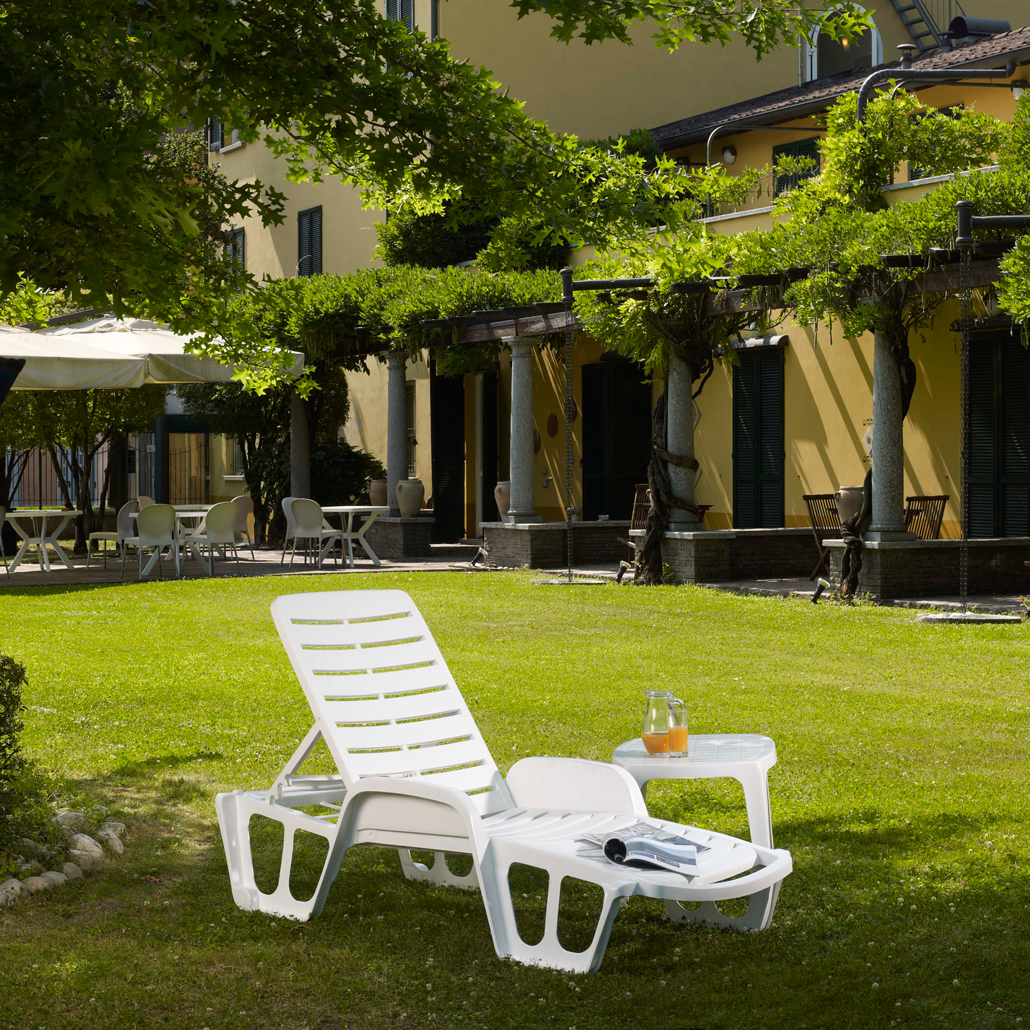 Lamamistool FISSO 71x192xH45cm, valge plastik. Lamamistooli reguleeritava seljatoe saab panna horisontaalsesse asendisse või valida sobiv kaldenurk nelja positsiooni vahel. Toolid on virnastatavad. Kaalupiirang 100kg. Materjal: polüpropüleen (PP). HOOLDUS: plastikmööbel ei vaja erilist hooldust. Puhastage pinnad regulaarselt vee ja lahja pesuvahendi lahusega. Ärge kasutage pleegitavaid või abrasiivseid puhastusvahendeid. HOIUSTAMINE: suvehooaja lõppedes soovitame aiamööblit hoiustada siseruumides. Puhastage ja kuivatage mööbel enne hoiule panekut. Kasutage hoiustamiseks kuiva ning hea ventilatsiooniga ruumi.