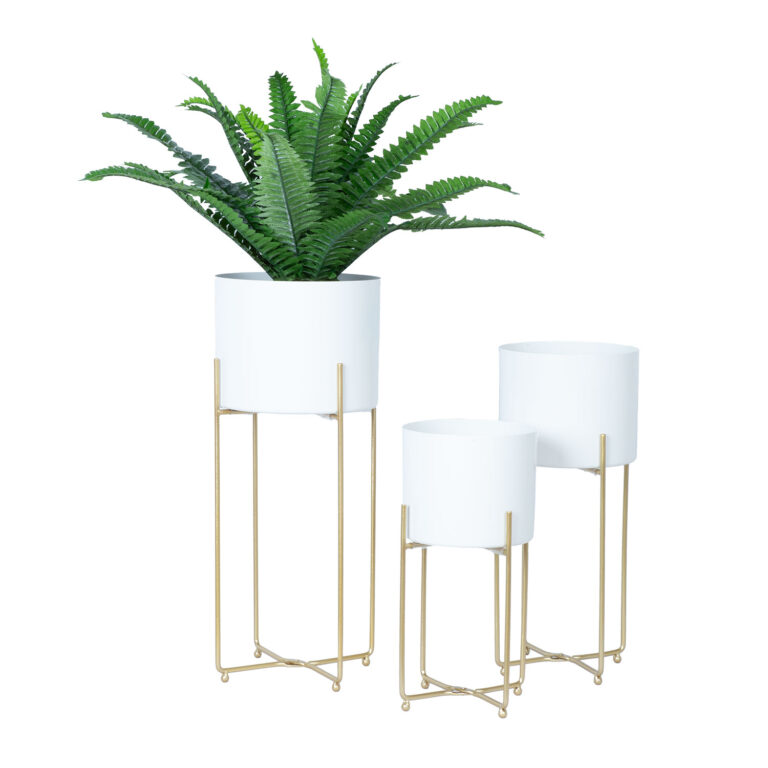 Lillepostament DEIA WHITE S 19,5x18xH37cm, valge/kuldne
