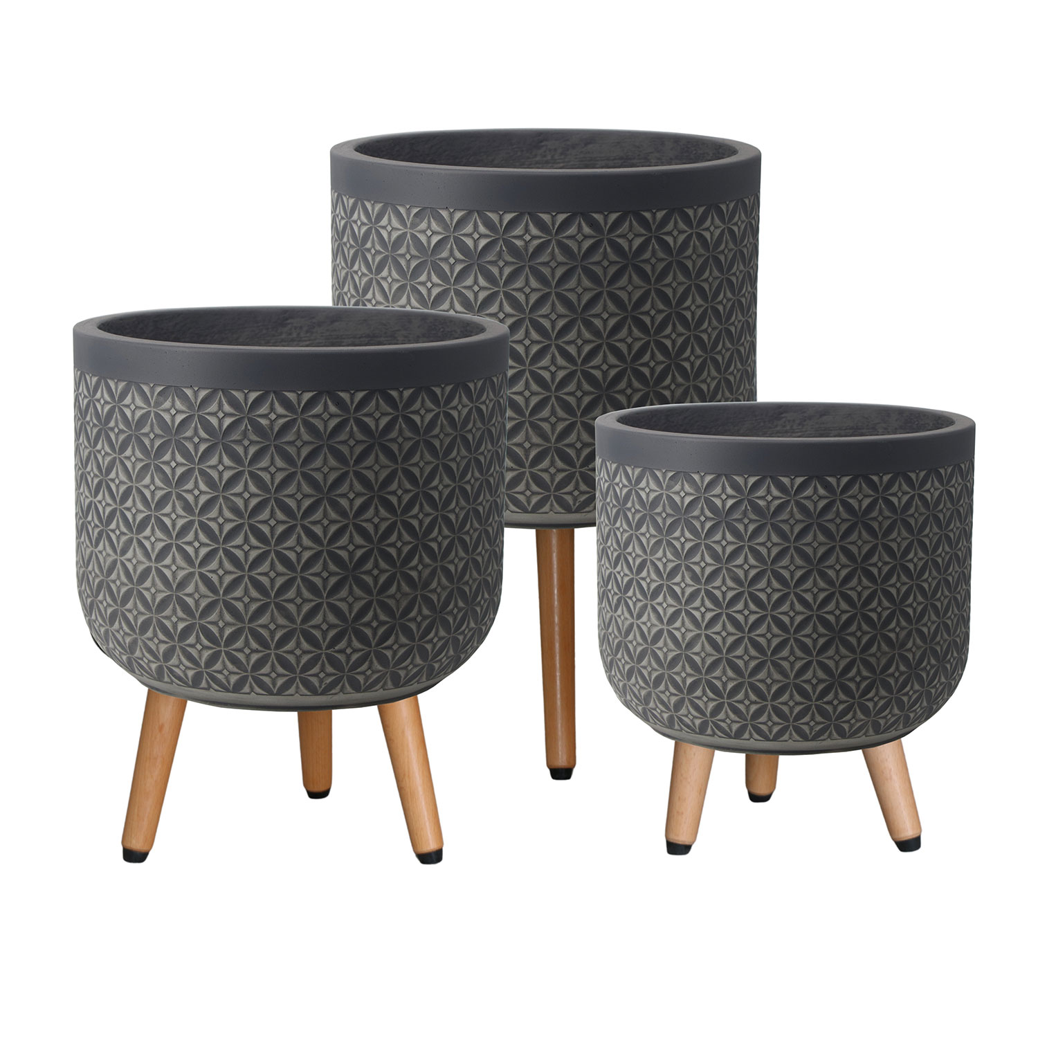 Lillepott SKY PAO D37xH52.3cm, tumehall, puidust jalgadega