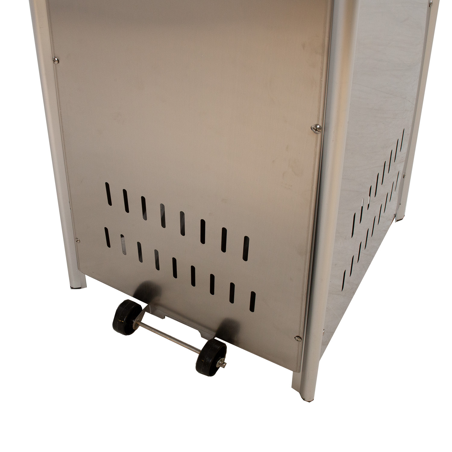 Korpuse ühel küljel on rattad, mis võimaldavad soojendit vajadusel mugavalt ja turvaliselt teisaldada.