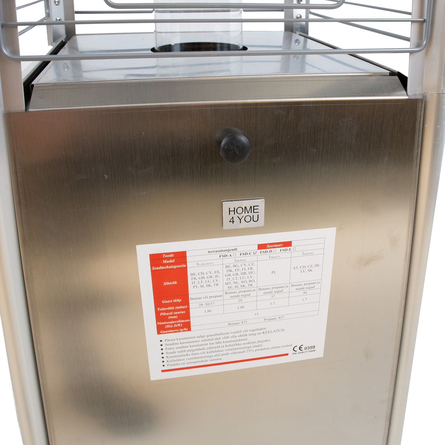 Gaasisoojendi korpus on valmistatud roostevabast terasest.