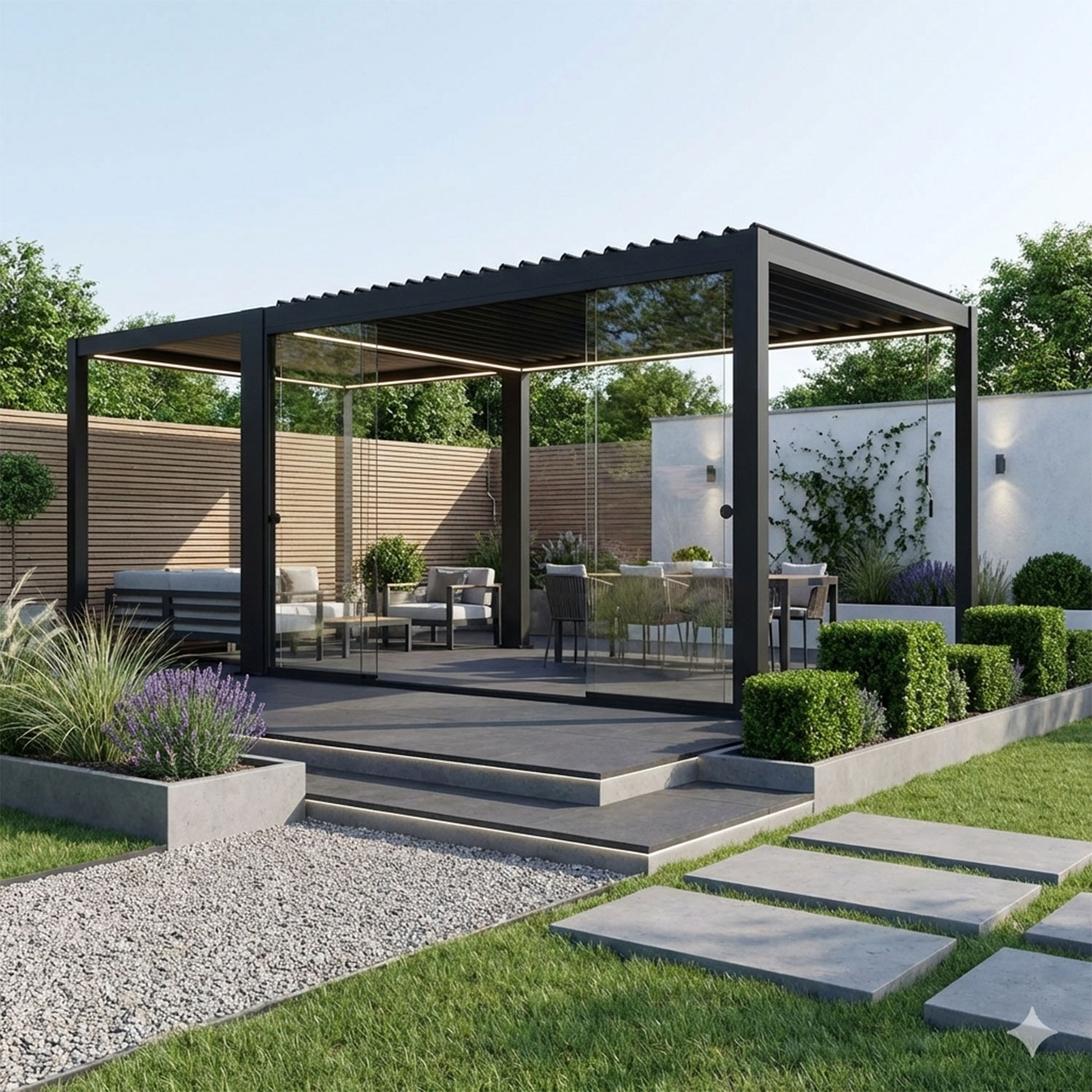 Klaasist lükandsein varikatuse MIRADOR-111 4-meetrisele küljele.