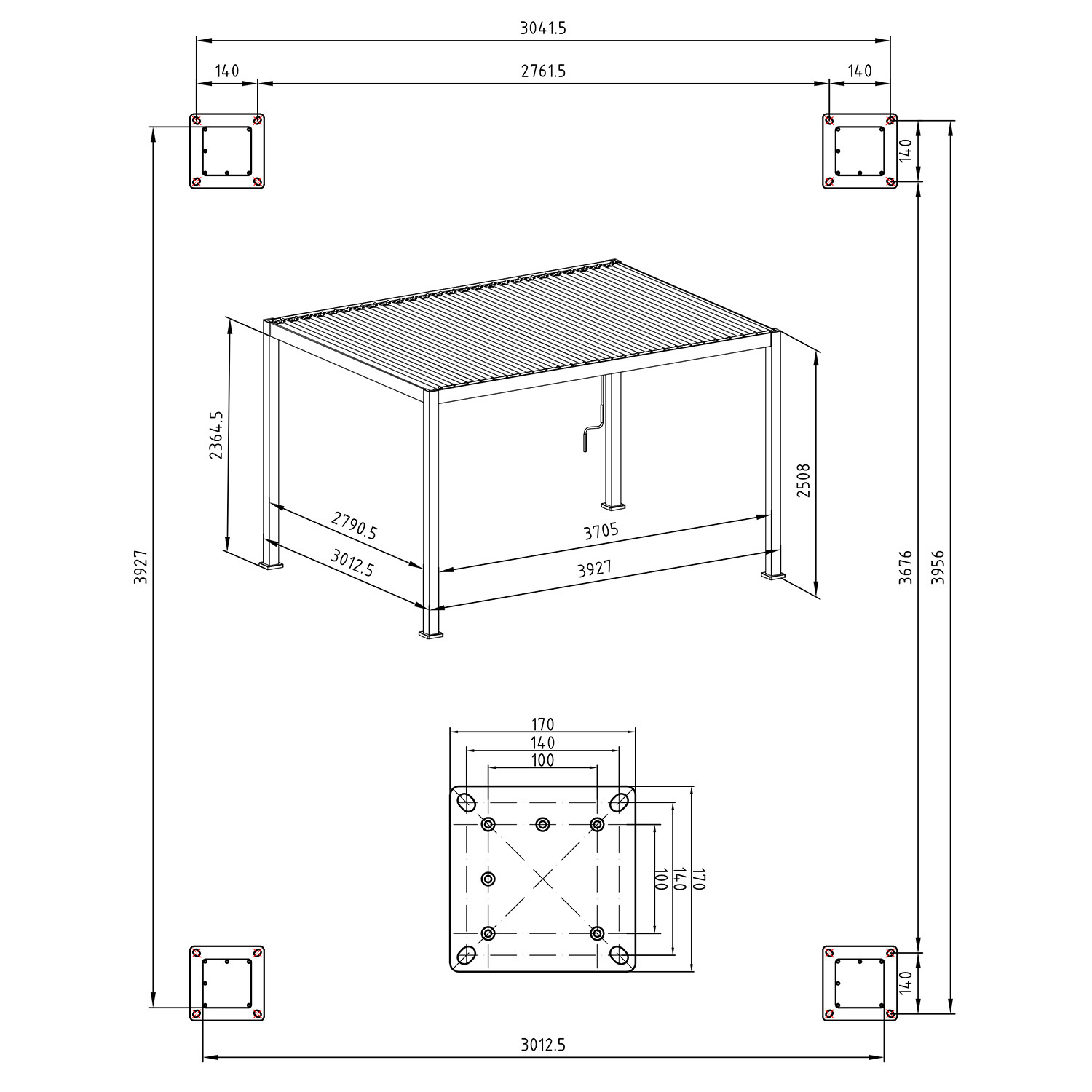 Varikatuse täpsed mõõdud: 3012,5 x 3927 x 2508 mm.