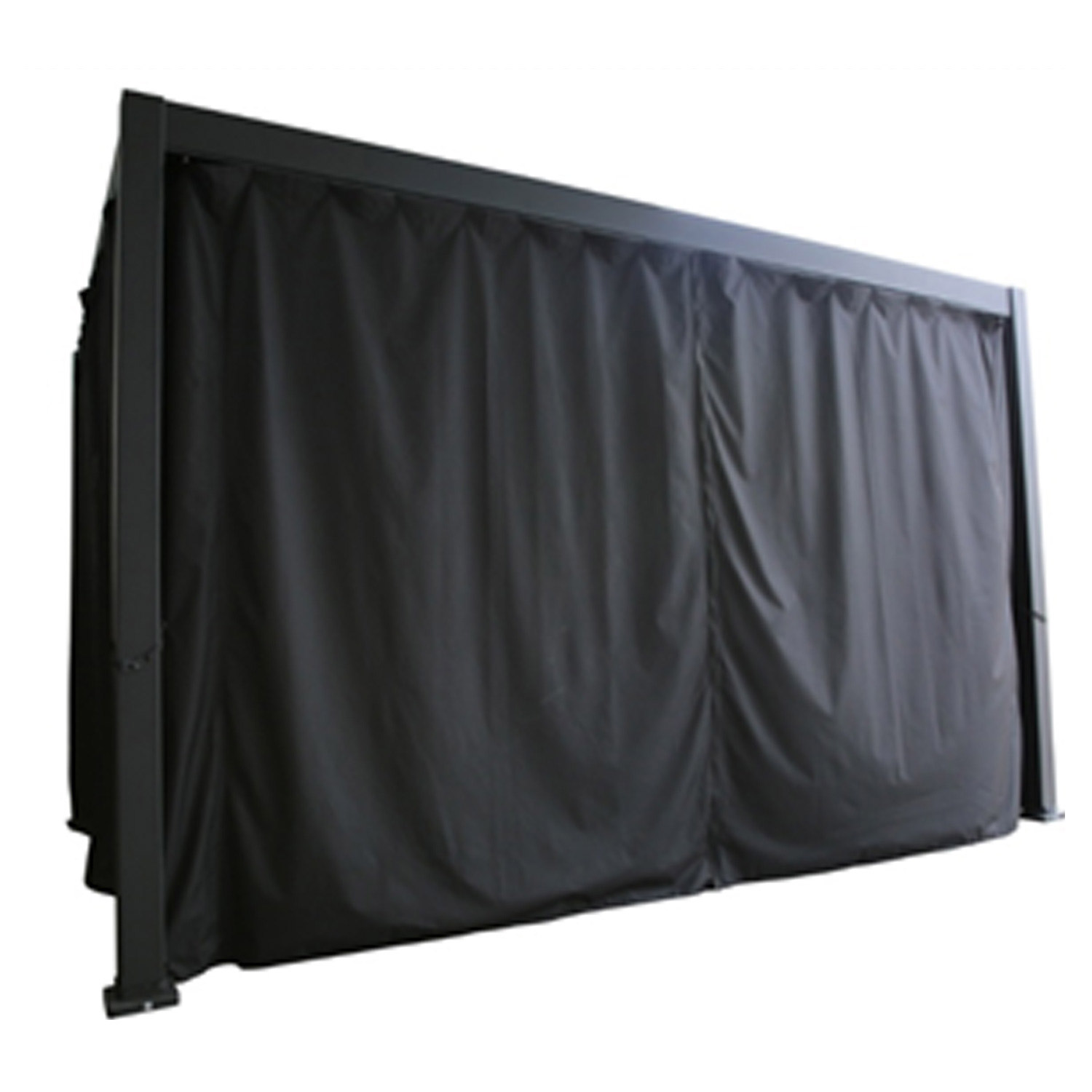 Külgkardinad on valmistatud mustast polüesterkangast 180 g/m².