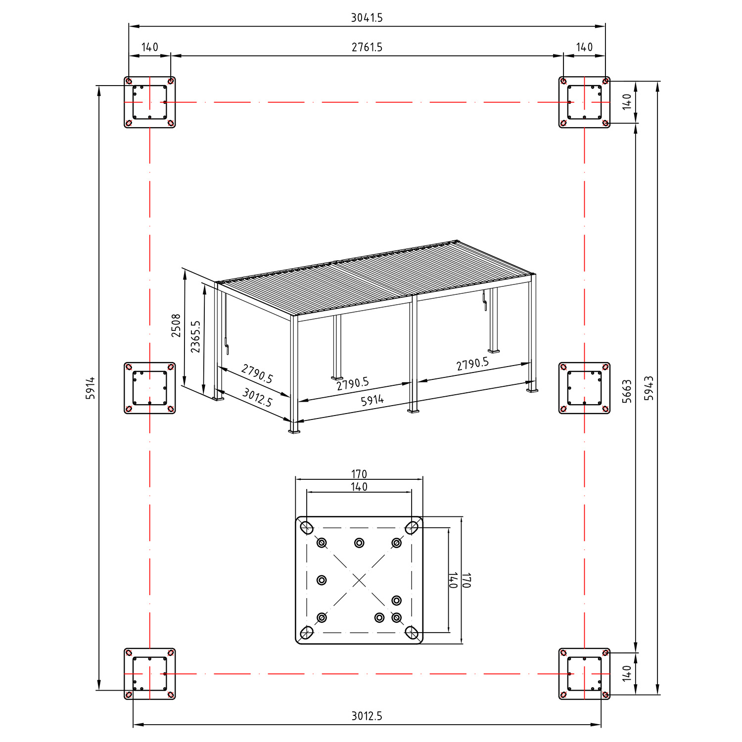 Varikatuse täpsed mõõdud: 3012,5 x 5914 x 2508 mm.
