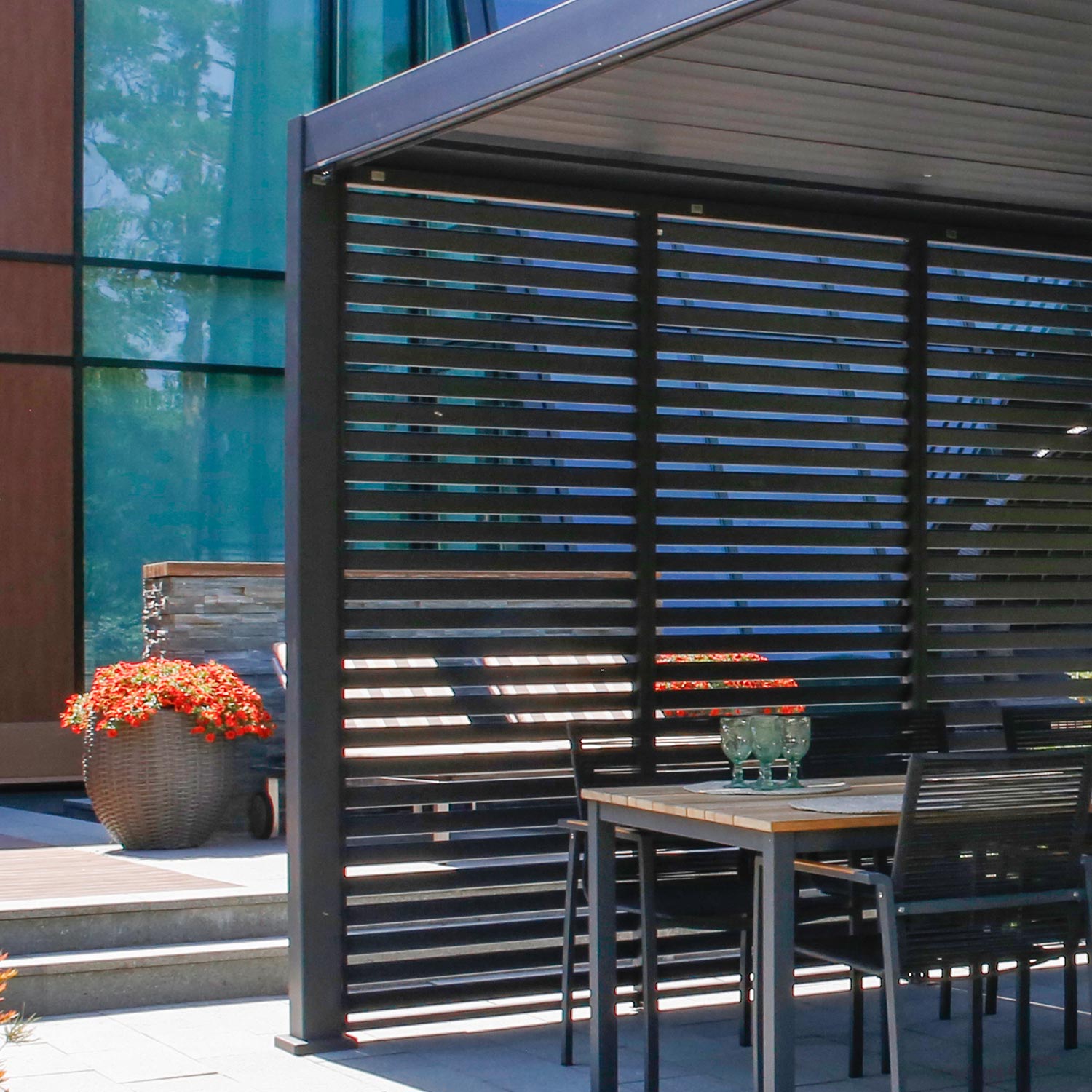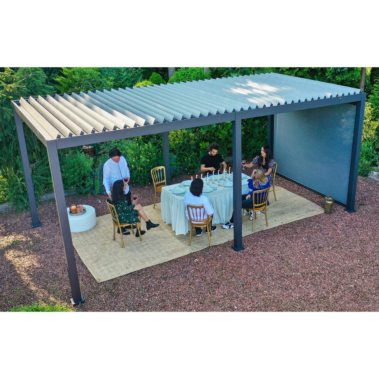 Kaasaegne, elegantne ja funktsionaalne varikatus/aiapaviljon sobib kõikjale – aeda, terrassile, basseini äärde või hoopis auto varjualuseks ja see on kasutatav aastaringselt. Uuenduslik lamellkatus on vändaga avatav ja suletav ning pakub kaitset ja varju nii kerge vihma, kui kõrvetava päikese eest. Suletud lamellidega katus on veekindel. Tänu sisse ehitatud vihmaveesüsteemile juhitakse vesi ohutult katuselt ära.
