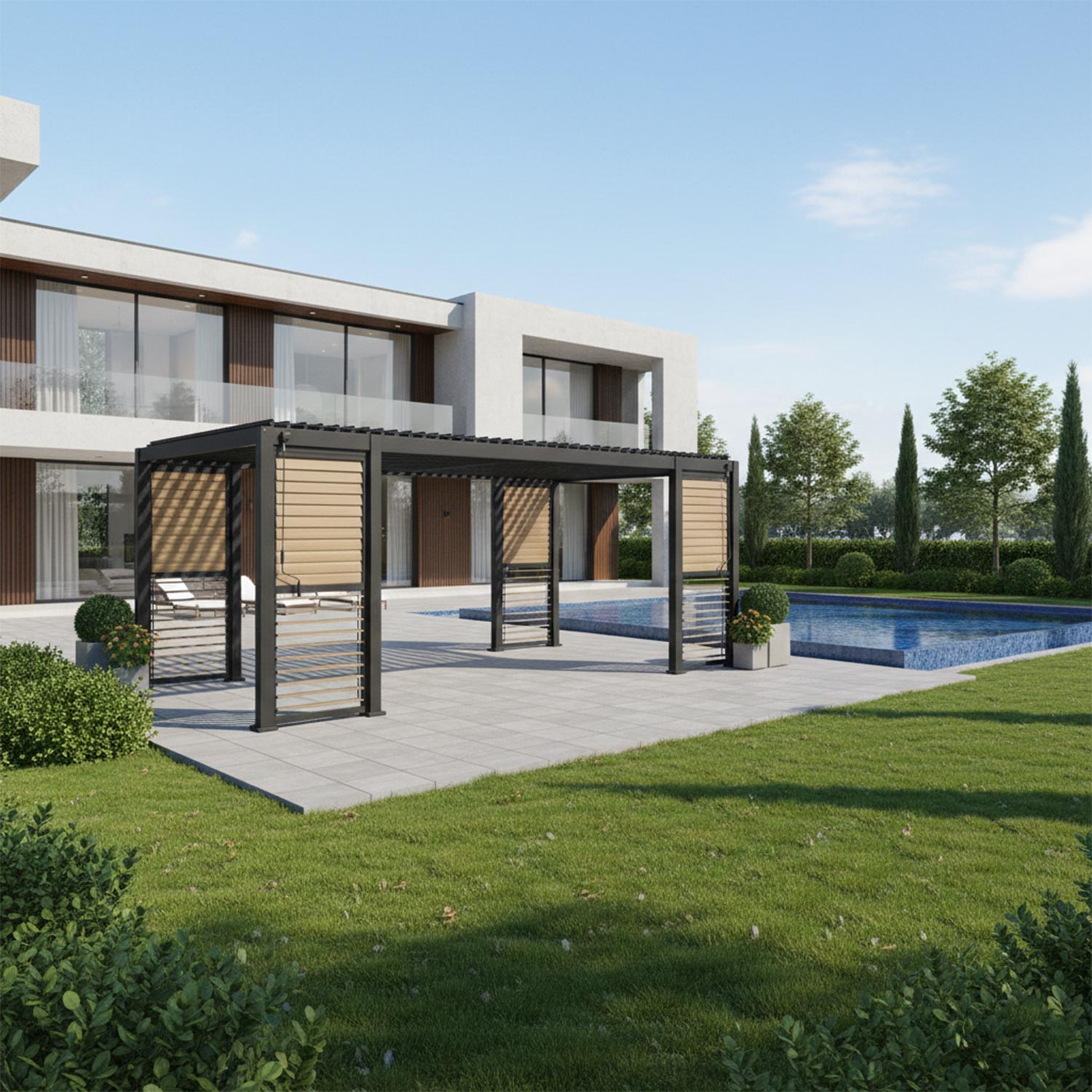 Kaasaegne, elegantne ja funktsionaalne varikatus/aiapaviljon sobib kõikjale – aeda, terrassile, basseini äärde või hoopis auto varjualuseks ja see on kasutatav aastaringselt. Uuenduslik lamellkatus on vändaga avatav ja suletav ning pakub kaitset ja varju nii kerge vihma, kui kõrvetava päikese eest. Suletud lamellidega katus on veekindel. Tänu sisse ehitatud vihmaveesüsteemile juhitakse vesi ohutult katuselt ära.
