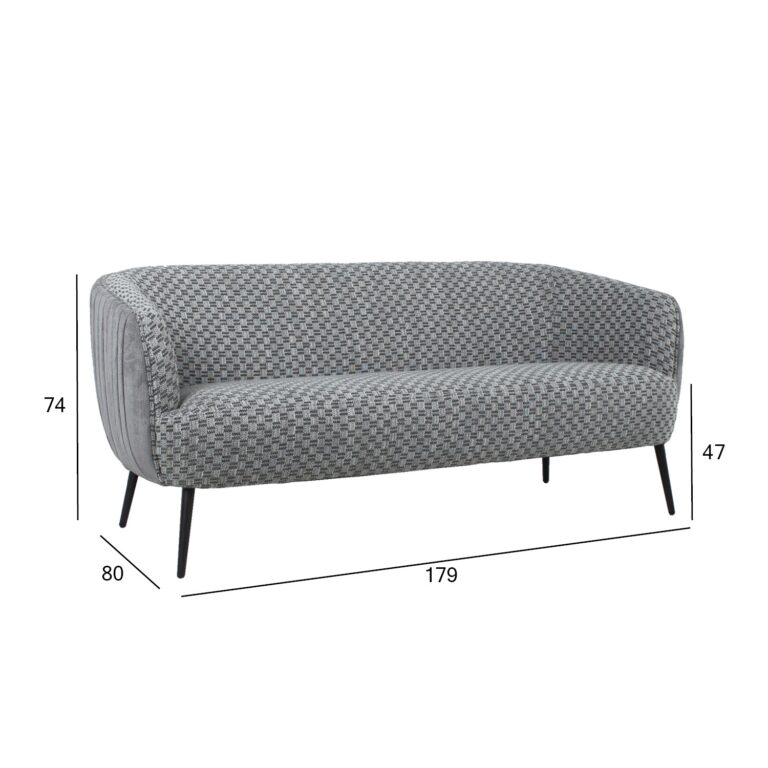 Diivan ACCENT 3-kohaline, hall. Diivani karkass on valmistatud puidust ja vineerist. Istme sees on pocket vedruplokk. Diivan on polsterdatud kvaliteetse polüuretaanvahuga. Kattematerjal: 100% polüesterkangagas. Diivanil on metallist jalad. Diivani üldmõõdud on 179x80xH74cm.