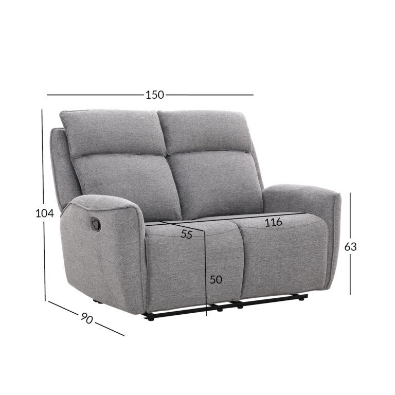 Diivan MAREN 2-kohaline manuaalne recliner 150x90xH104cm, hall