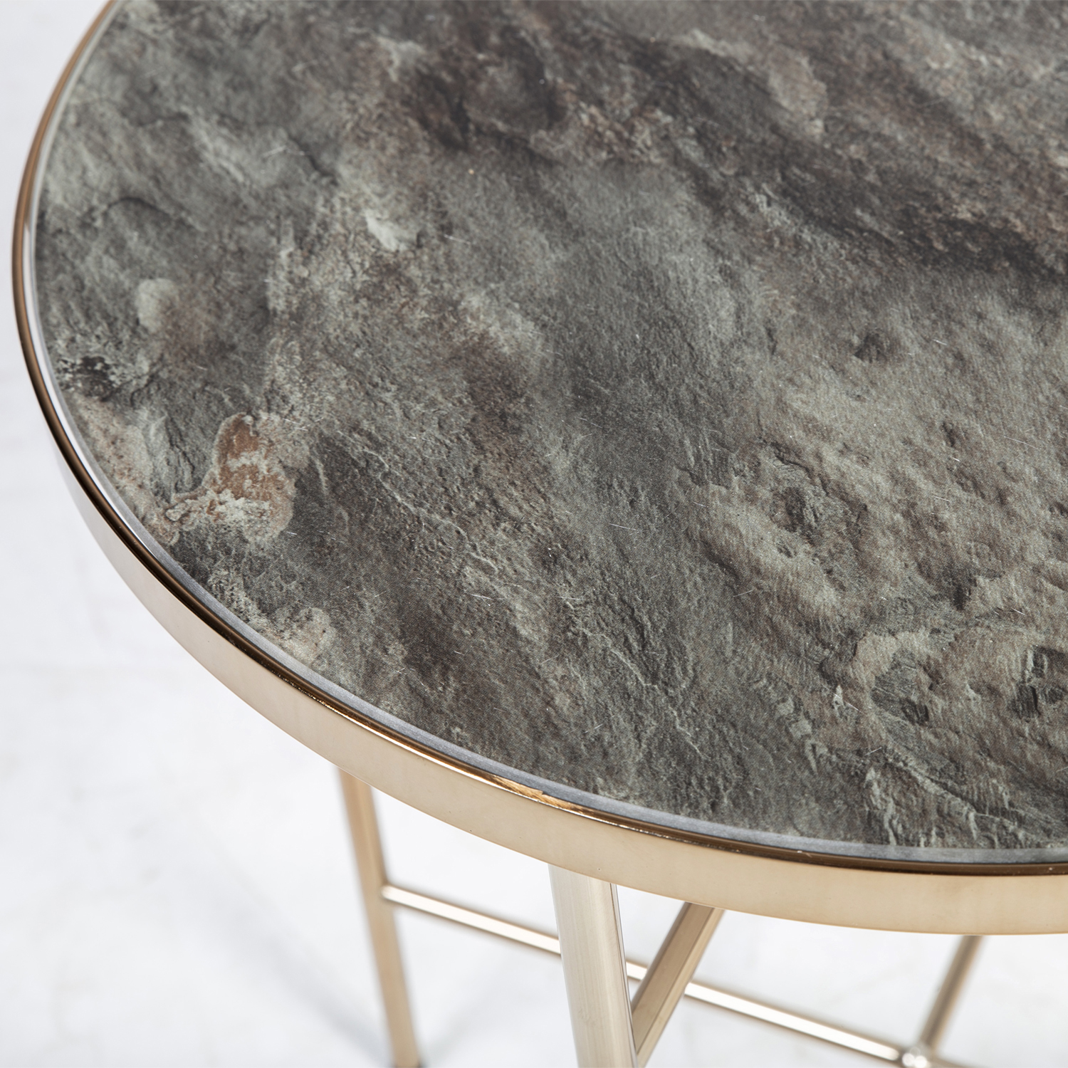 Abilaud ASTORIA D42,5xH51cm. Lauaplaat: 5mm karastatud klaas marmori dekooriga. Terasest jalad ja alusraam läikiva šampanja toonis pinnaviimistlusega.
