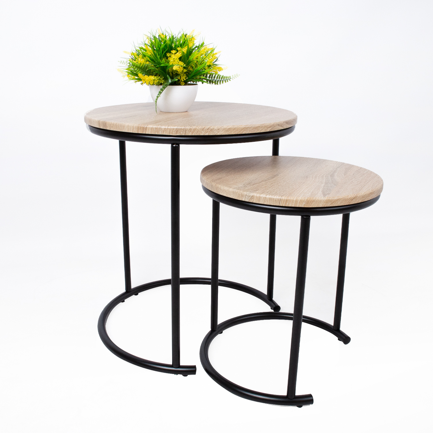 Abilaud ELTO tamm. Kahest lauast koosnev maitsekas ning mugavalt kasutatav abilaudade komplekt on abiks igapäevaselt, kuid muudab ka kodus võõrustamise hõlpsamaks. Lauaplaadid on valmistatud tammedekooriga laminaatplaadist. Laudade terasjalad on kaetud mati musta pulbervärviga. Suurema laua mõõdud on D44,5xH50cm ning väiksema mõõdud D34,5xH40cm.