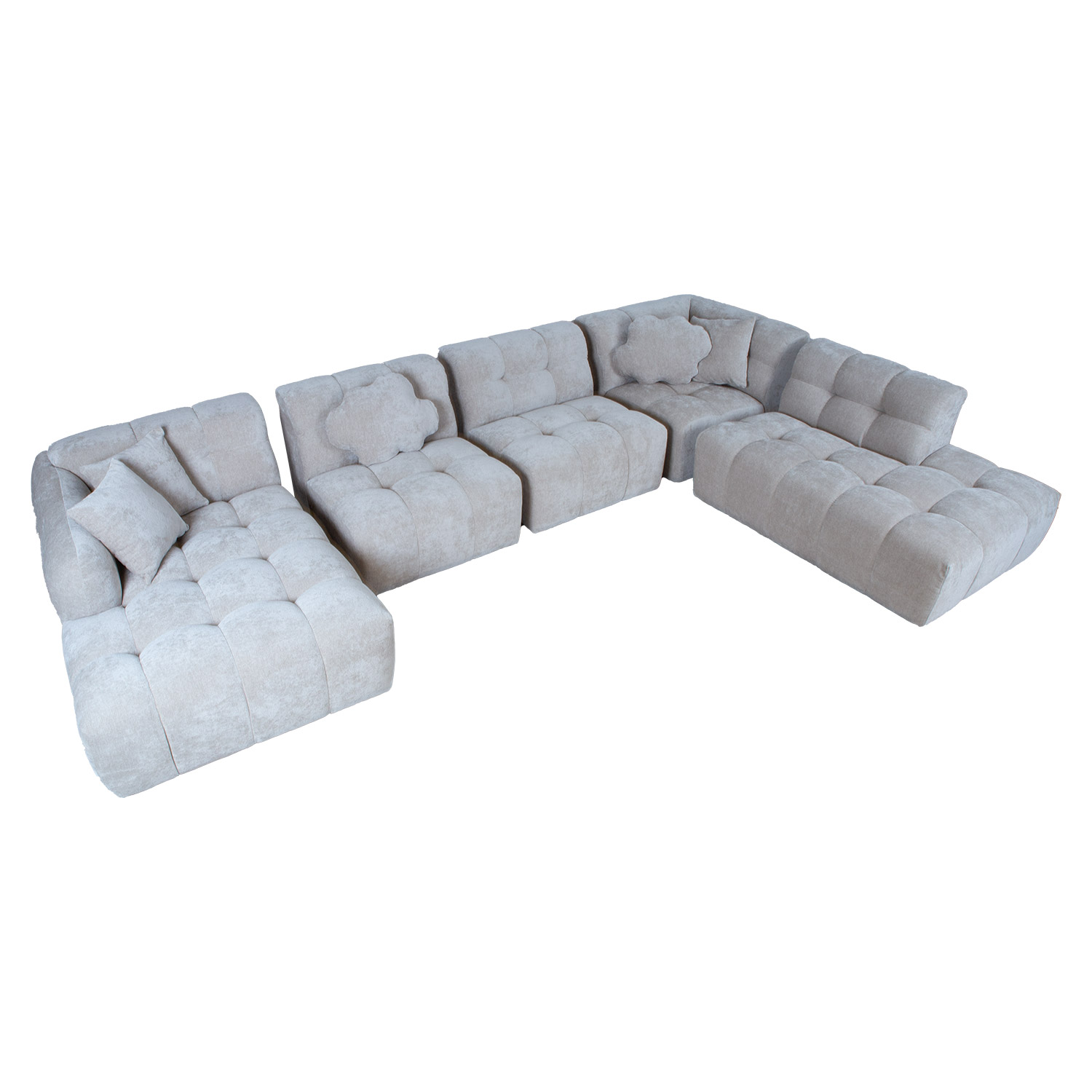 Komplekti kuulub 5 diivanipatja: 43 x 43 cm /3 tk, pilvekujuline padi 60 x 40 cm/2 tk.