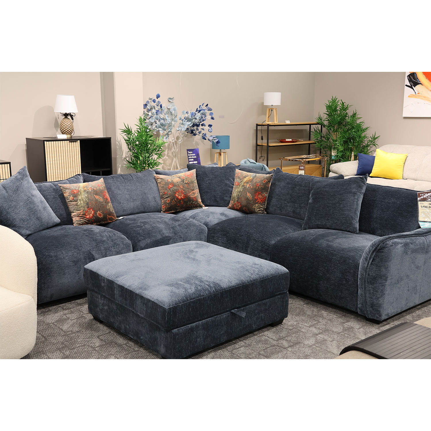 Luksusliku sametise kangaga kaetud pehme ja mahukas nurgadiivan on tõeline pilgupüüdja igas elutoas. Diivani juurde kuulub funktsionaalne panipaigaga tumba.
