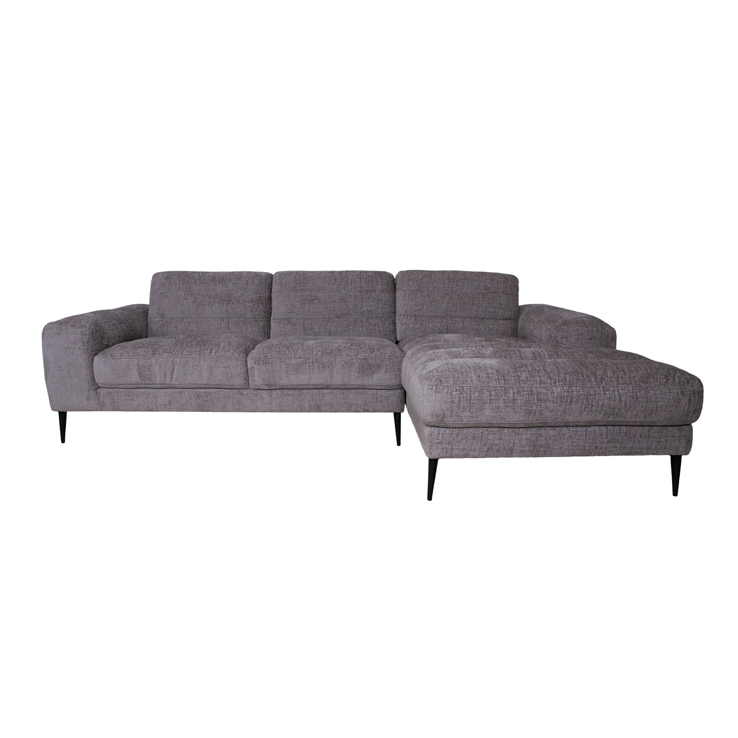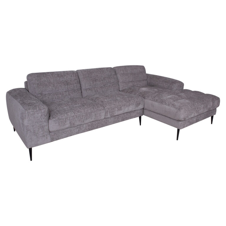 Nurgadiivan KRISTY parem nurk, hall. Diivani karkass on valmistatud täispuidust vineerist ja MDF plaadist. Istumismugavuse tagab sik-sak vedrustus ja vastupidavast poroloonist polsterdus (PU 30kg/m³). Diivan on üleni kaetud kvaliteetse polüesterkangaga. Diivani üldmõõdud on 267×97/160xH80cm. Istme sügavus 60cm, istme kõrgus 49cm. Käetoe kõrgus maast 60cm, käetoe laius 28cm. Diivanil on mustad metallist jalad H17cm.