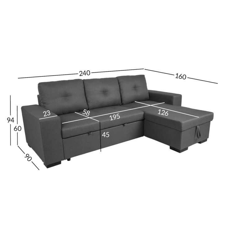 Diivani üldmõõdud: 240 x 90/160 x H94 cm.