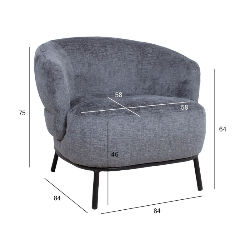 Tugitool GEMALA tumehall. Tugitooli pehme polsterdusega iste on kaetud sametise polüesterkangaga, Martindale väärtus 41 000. Tooli karkass on valmistatud puidust ja vineerist. Tooli sees on pocket vedruplokk. Polsterduseks on kasutatud polüuretaanvahtu ja polüesterkiudu. Tooli üldmõõdud on 84x84xH75cm. Istme laius 58cm, istmesügavus 58cm, istme kõrgus 46cm. Käetoe kõrgus maast 64cm. Tugitoolil on mustad metallist jalad H17cm.