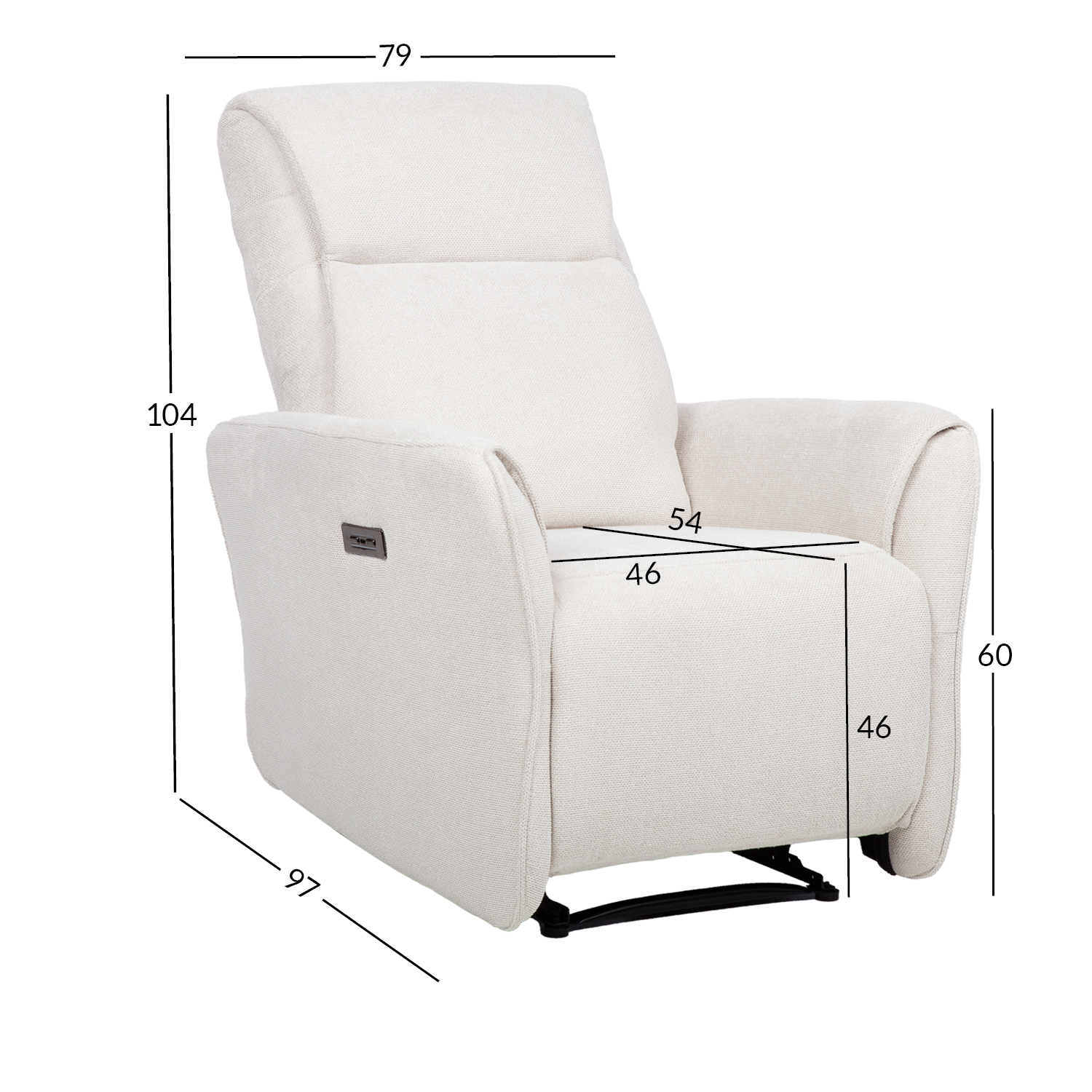 Tugitool HEIDY elektriline recliner 79x97xH104cm, valge