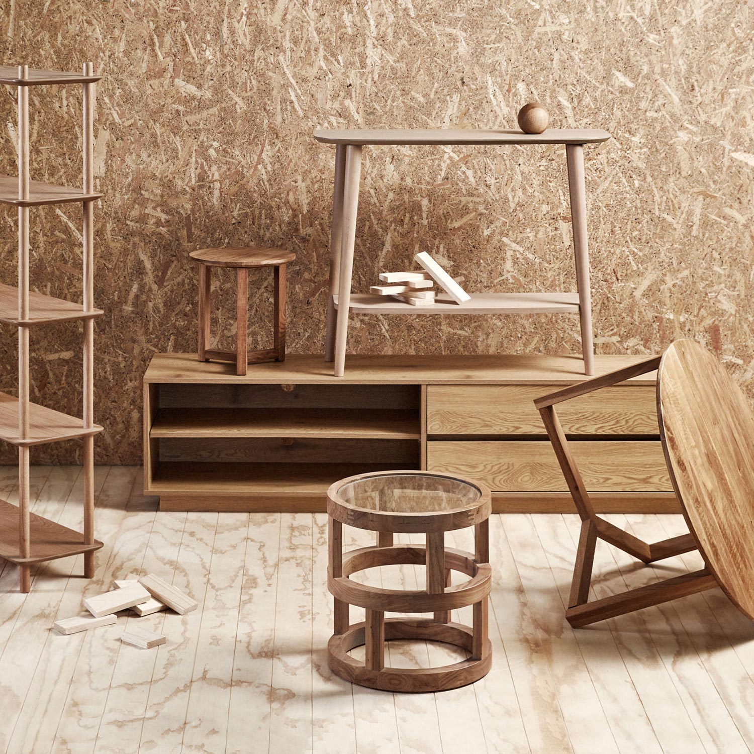 TV laud on valmistatud melamiinkattega mööbliplaadist.