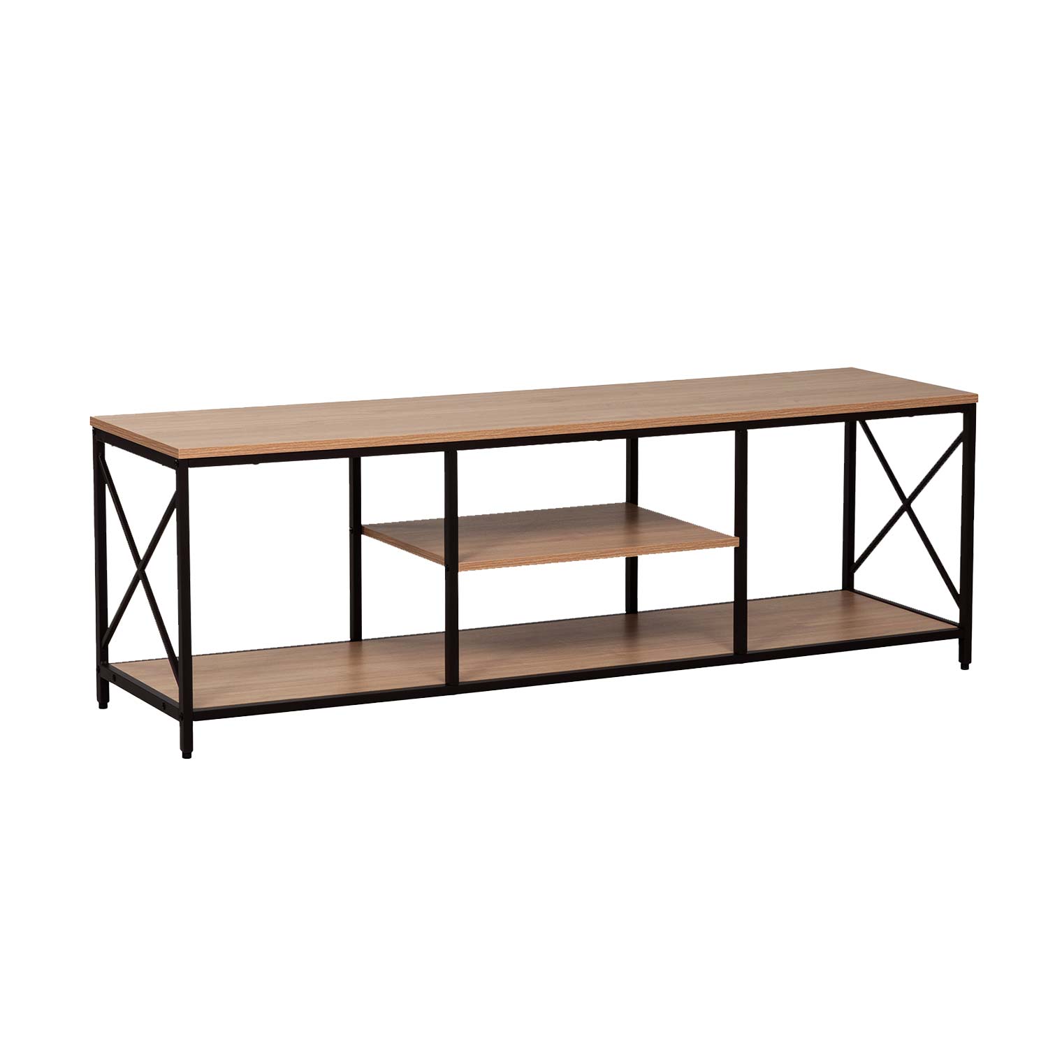 TV laud STUDY 140x40xH46,5cm, tamm/must. Pealmine plaat ja riiulid: tamme dekooriga melamiinplaat. Raam on valmistatud metallist ja viimistletud musta pulbervärviga.